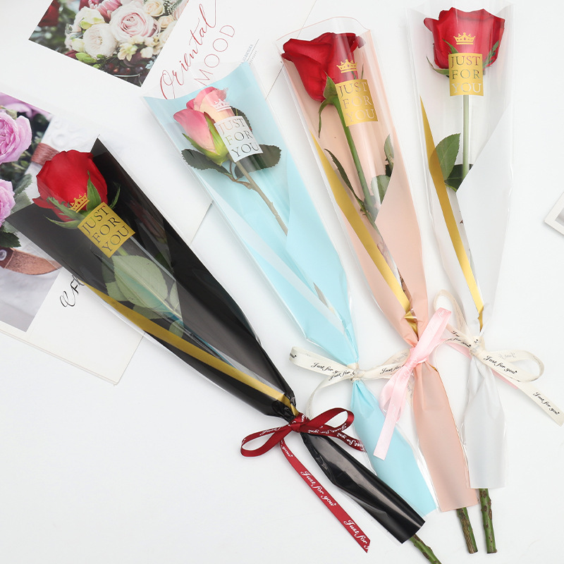 Nueva tienda de flores material de embalaje floral Día de San Valentín flor Rosa bolsa de embalaje ramo bolsa de triángulo corona bolsa individual