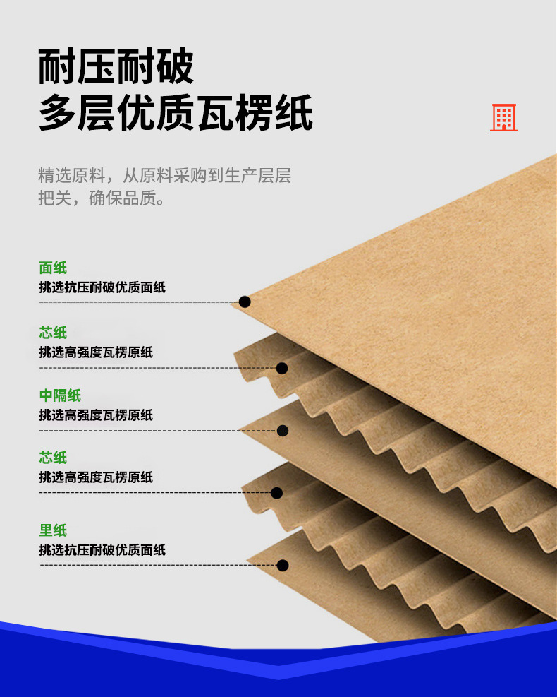 Nivel de dureza del materialPozo BC extra duro KK de cinco capas,Cartón corrugado de tres capas reforzado con flauta B.,Pozo EB ordinario AA de cinco capas