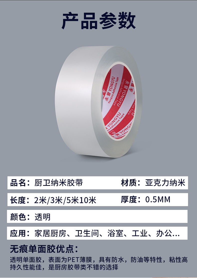 Cocina y baño impermeable cinta anti-moho transparente acrílico de una sola cara nano pegamento cocina estufa taimei costura etiqueta anti-moho