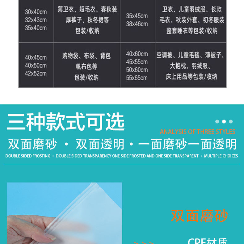 | Modelo de especificación | Doble capa mate [14 hilos]; 10*15CM,Doble capa mate [14 hilos]; 13*18CM,Doble capa mate [14 hilos]; 14*20CM,Doble capa mate [14 hilos]; 15*24CM,Doble capa mate [14 hilos]; 16*22CM,Doble capa mate [14 hilos]; 17*25CM,Doble capa mate [14 hilos]; 18*20cm,Doble capa mate [14 hilos]; 18*28CM,Doble capa mate [14 hilos]; 20*25CM,Doble capa mate [14 hilos]; 20*28CM,Doble capa mate [14 hilos]; 20*30CM,Doble capa mate [14 hilos]; 23*28CM,Doble capa mate [14 hilos]; 23*33CM,Doble capa mate [14 hilos]; 25*30CM,Doble capa mate [14 hilos]; 25*35CM,Doble capa mate [14 hilos]; 28*30CM,Doble capa mate [14 hilos]; 28*33CM,Doble capa mate [14 hilos]; 28*36CM,Doble capa mate [14 hilos]; 28*38CM,Doble capa mate [14 hilos]; 30*35CM,Doble capa mate [14 hilos]; 30*40CM,Doble capa mate [14 hilos]; 33*38CM,Doble capa mate [14 hilos]; 32*43CM,Doble capa mate [14 hilos]; 35*40CM,Doble capa mate [14 hilos]; 35*45CM,Doble capa mate [14 hilos]; 38*53CM,Doble capa mate [14 hilos]; 40*45CM,Doble capa mate [14 hilos]; 40*50CM,Doble capa mate [14 hilos]; 45*55CM,Doble capa mate [14 hilos]; 45*60CM,Doble capa mate [14 hilos]; 50*60CM,Doble capa mate [14 hilos]; 55*65CM,Doble capa mate [14 hilos]; 50*70CM,Doble capa mate [14 filamentos]; cuadrado 15*15CM,Doble capa mate [14 hilos]; cuadrado 25*25CM,Doble capa mate [14 hilos]; cuadrado 35*35CM,Doble capa mate [14 hilos]; versión horizontal 20*15CM,Doble capa mate [14 hilos]; versión horizontal 25*15CM,Doble capa mate [14 hilos]; versión horizontal 28*20CM,Doble capa mate [14 hilos]; versión horizontal 32*22CM,Doble capa transparente [12 hilos]; 10*15CM,Doble capa transparente [12 hilos]; 13*18CM,Doble capa transparente [12 hilos]; 14*20CM,Doble capa transparente [12 hilos]; 15*24CM,Doble capa transparente [12 hilos]; 16*22CM,Doble capa transparente [12 hilos]; 17*25CM,Doble capa transparente [12 hilos]; 18*20cm,Doble capa transparente [12 hilos]; 18*28CM,Doble capa transparente [12 hilos]; 20*25CM,Doble capa transparente [12 hilos]; 20*28CM,Doble capa transparente [12 hilos]; 20*30CM,Doble capa transparente [12 hilos]; 23*28CM,Doble capa transparente [12 hilos]; 23*33CM,Doble capa transparente [12 hilos]; 25*30CM,Doble capa transparente [12 hilos]; 25*35CM,Doble capa transparente [12 hilos]; 28*30CM,Doble capa transparente [12 hilos]; 28*33CM,Doble capa transparente [12 hilos]; 28*36CM,Doble capa transparente [12 hilos]; 28*38CM,Doble capa transparente [12 hilos]; 30*35CM,Doble capa transparente [12 hilos]; 30*40CM,Doble capa transparente [12 hilos]; 33*38CM,Doble capa transparente [12 hilos]; 32*43CM,Doble capa transparente [12 hilos]; 35*40CM,Doble capa transparente [12 hilos]; 35*45CM,Doble capa transparente [12 hilos]; 40*45CM,Doble capa transparente [12 hilos]; 40*50CM,Doble capa transparente [12 hilos]; 45*55CM,Doble capa transparente [12 hilos]; 50*60CM,Doble capa transparente [12 hilos]; 55*65CM,Doble capa transparente [12 hilos]; cuadrado 15*15CM,Doble capa transparente [12 hilos]; cuadrado 25*25CM,Doble capa transparente [12 hilos]; cuadrado 35*35CM,Doble capa transparente [12 hilos]; versión horizontal 20*15CM,Doble capa transparente [12 hilos]; versión horizontal 25*15CM,Doble capa transparente [12 hilos]; versión horizontal 28*20CM,Doble capa transparente [12 hilos]; versión horizontal 32*22CM,Transparente/mate [14 hilos]; 17*25CM,Transparente/mate [14 hilos]; 18*28CM,Transparente/mate [14 hilos]; 20*25CM,Transparente/mate [14 hilos]; 23*28CM,Transparente/mate [14 hilos]; 30*40CM,Transparente/mate [14 hilos]; 35*45CM,Transparente/mate [14 hilos]; 40*50CM |