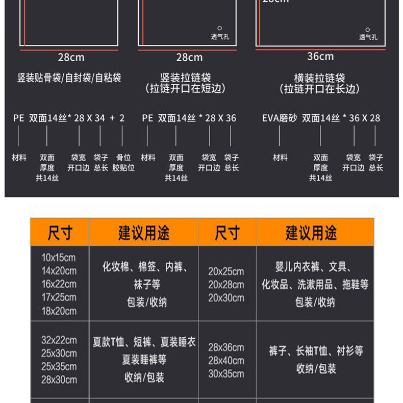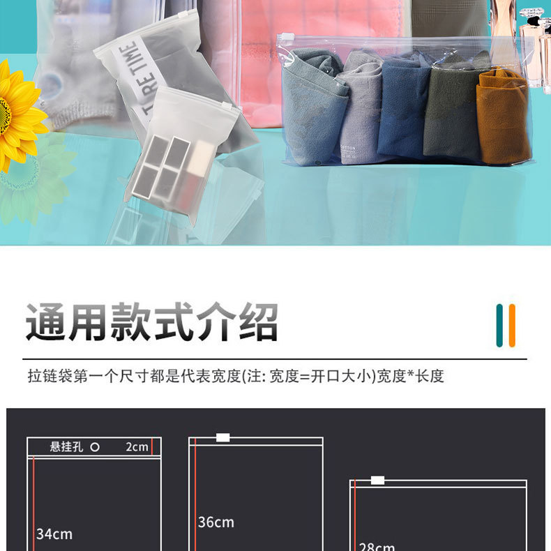 Bolsa de plástico con cierre hermético esmerilado para ropa, bolsa de embalaje con cierre, bolsa transparente con cierre, versión horizontal, bolsa de almacenamiento de PE, bolsa con cierre esmerilado