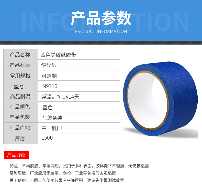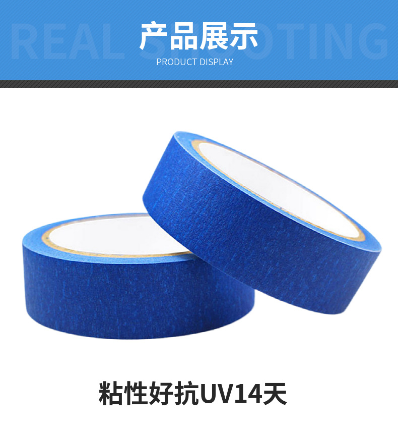 Cinta adhesiva de enmascarar azul resistente a los rayos UV para mayoristas de Amazon/ sitios web independientes/ comercio transfronterizo, cinta adhesiva de enmascarar para pintura en aerosol.