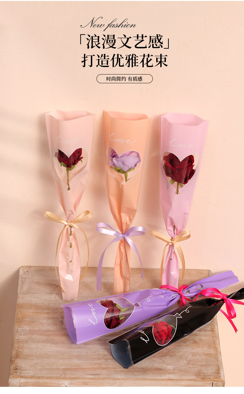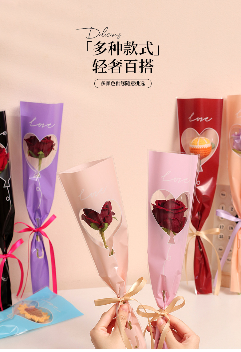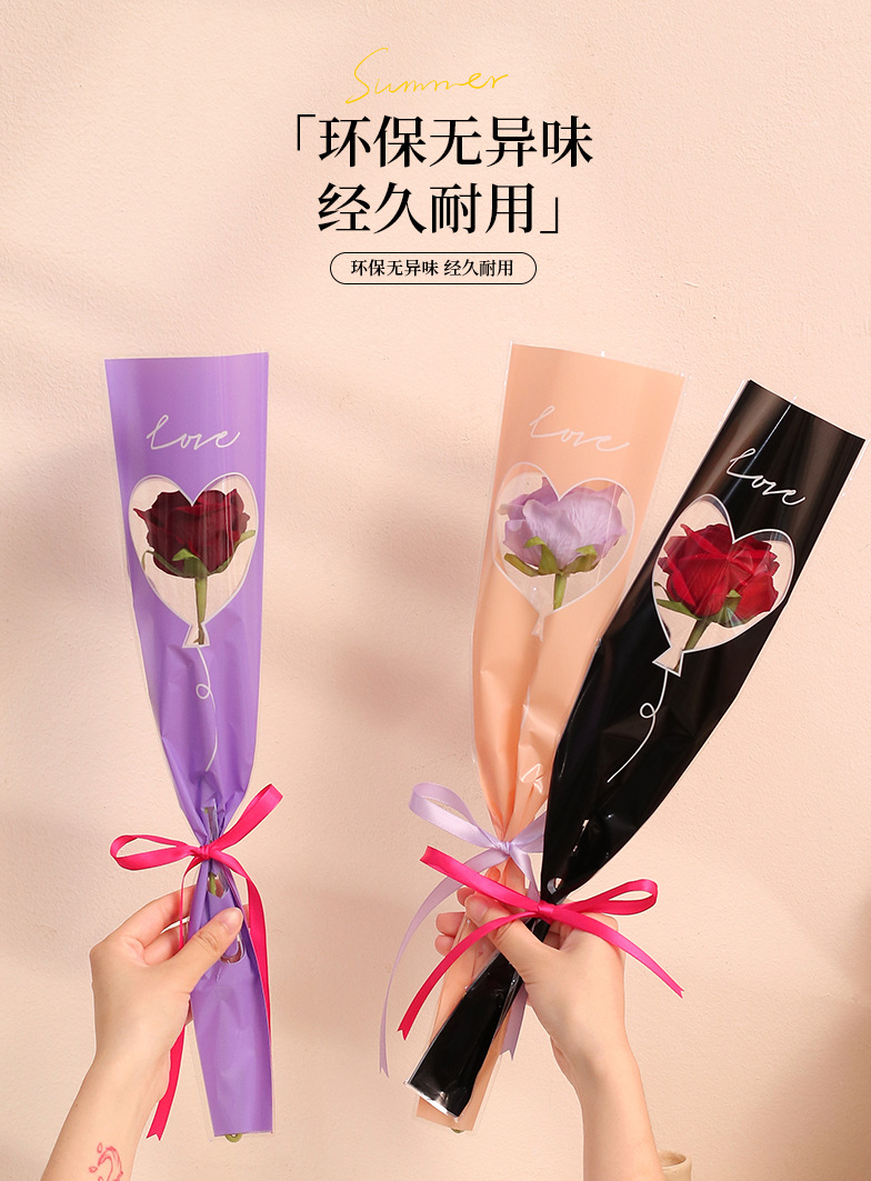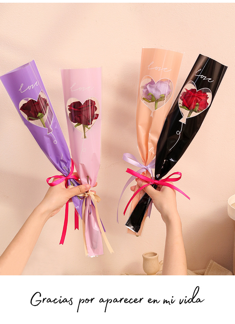 Bolsa de embalaje simple de una sola flor transparente ramo de rosas bolsa de triángulo bolsa individual bolsa de múltiples ramas material de tienda de flores florales