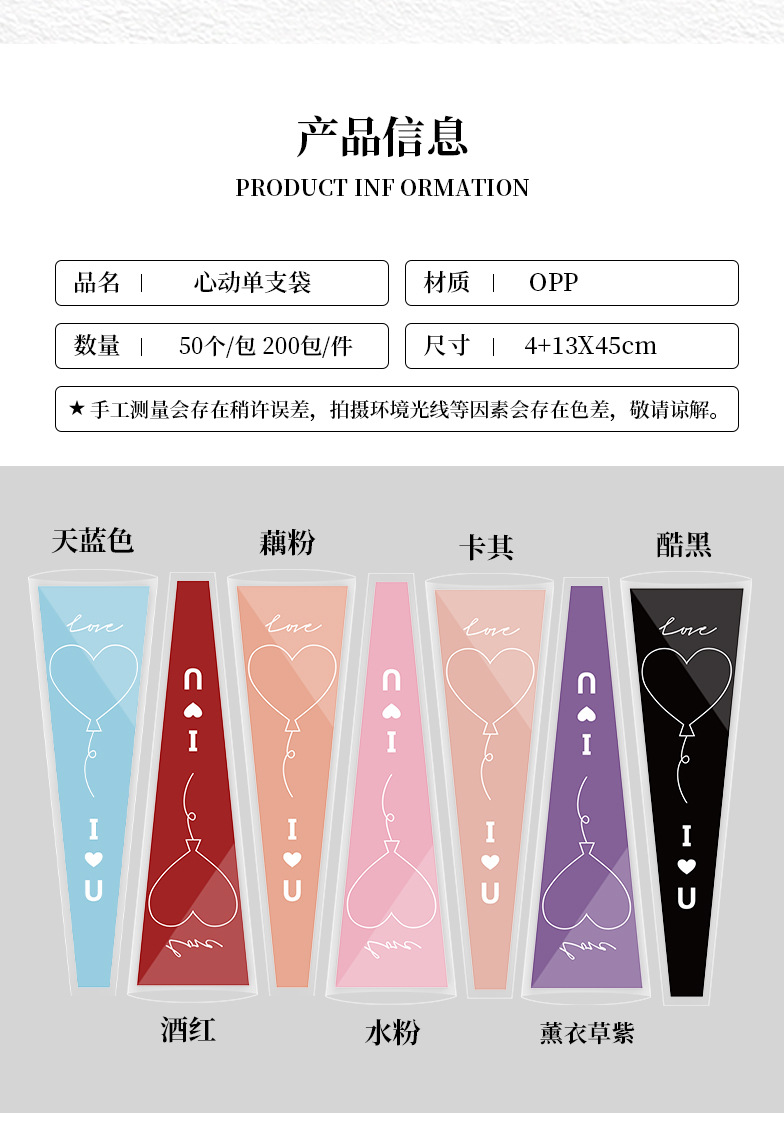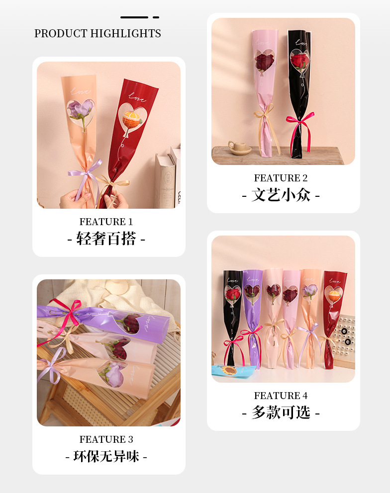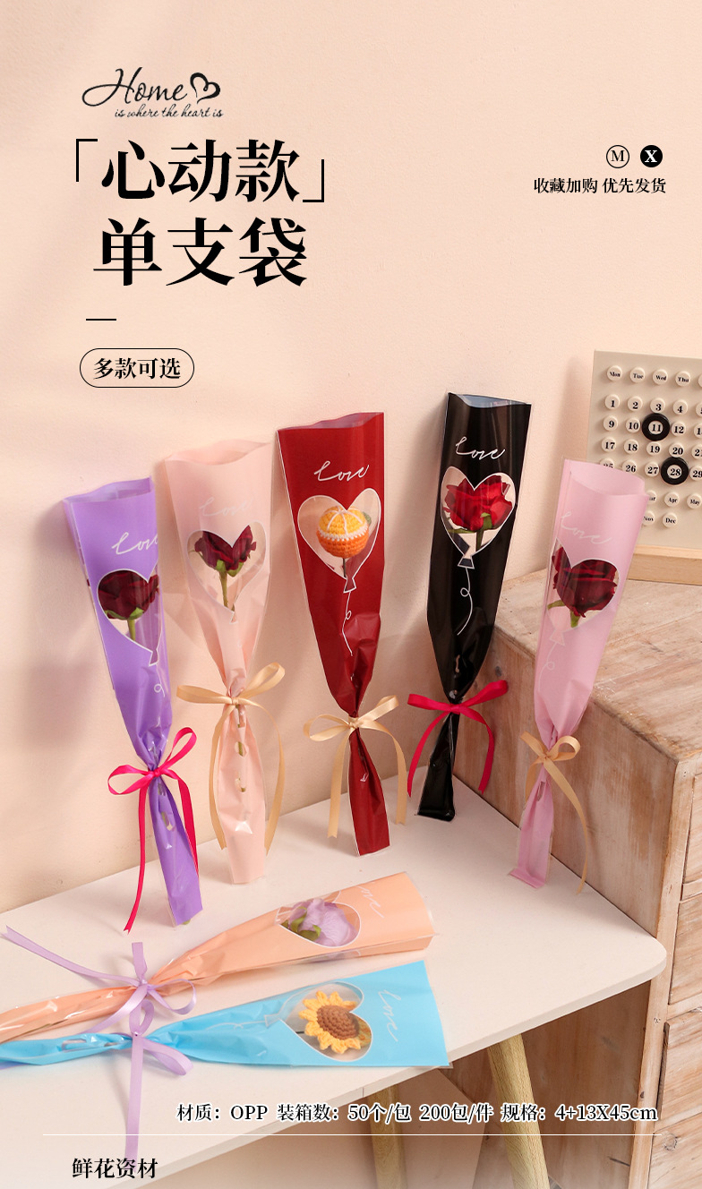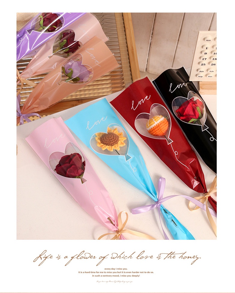 Bolsa de embalaje simple de una sola flor transparente ramo de rosas bolsa de triángulo bolsa individual bolsa de múltiples ramas material de tienda de flores florales