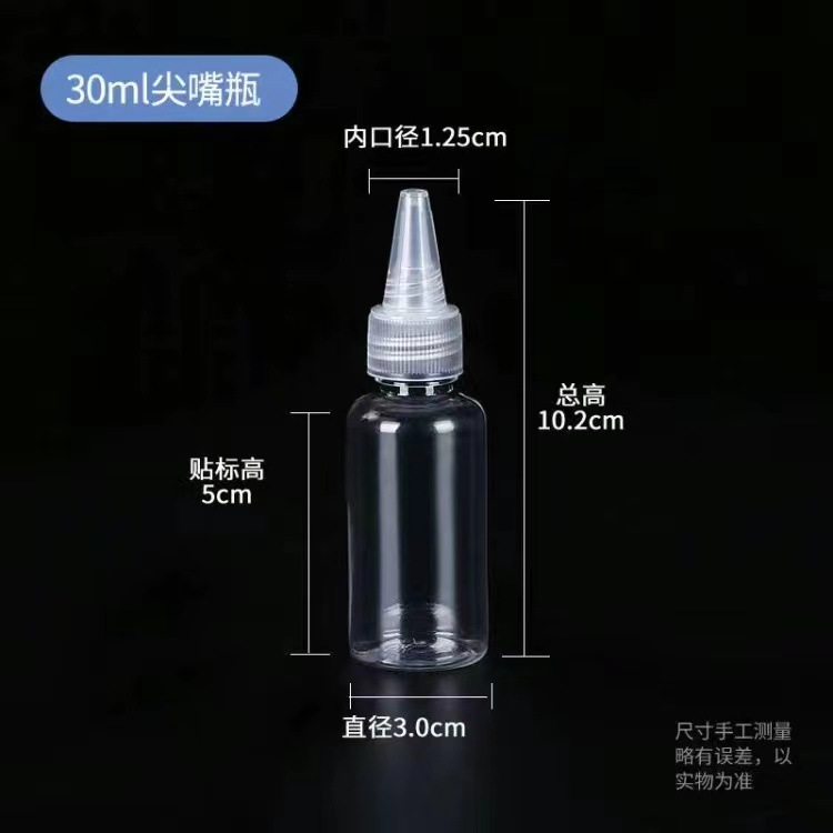Botella de compresión botella puntiaguda transparente botella pequeña botella vacía pegamento botella de plástico suave Loción sub-botella de gota botella de pigmento botella de medicina