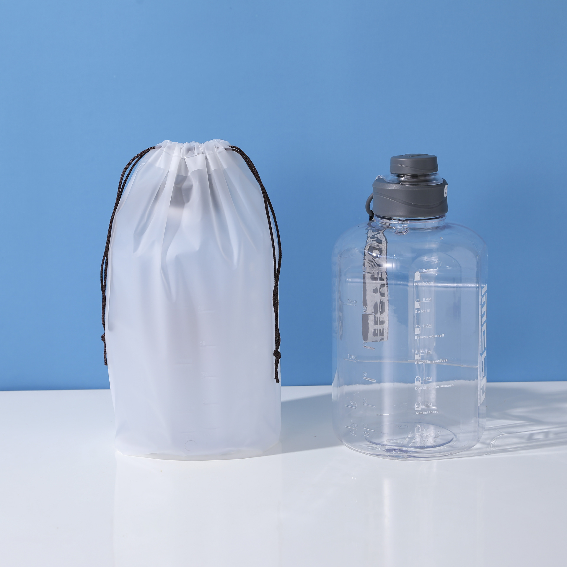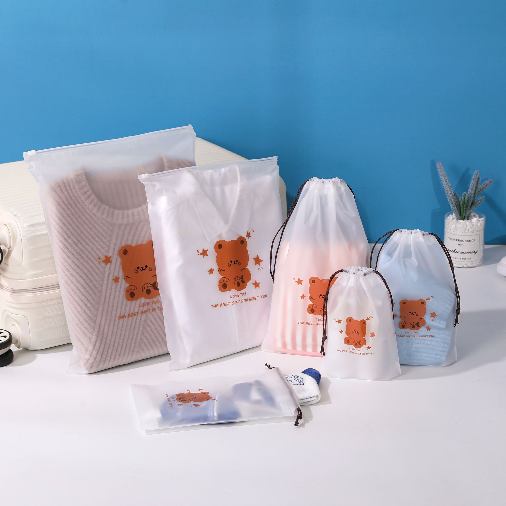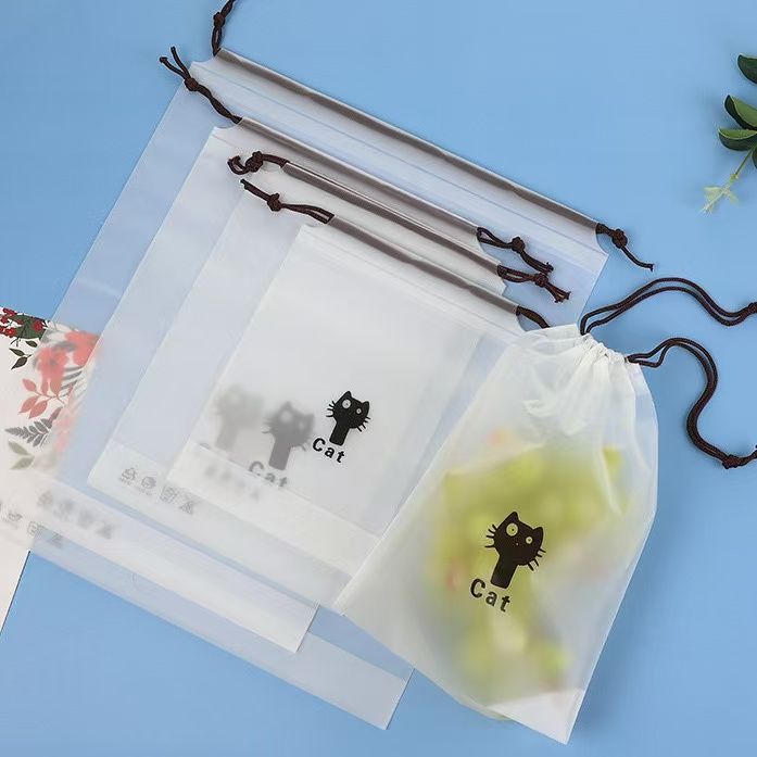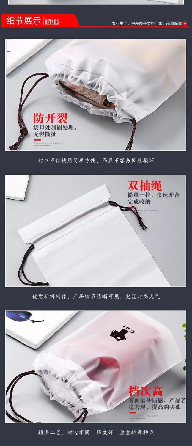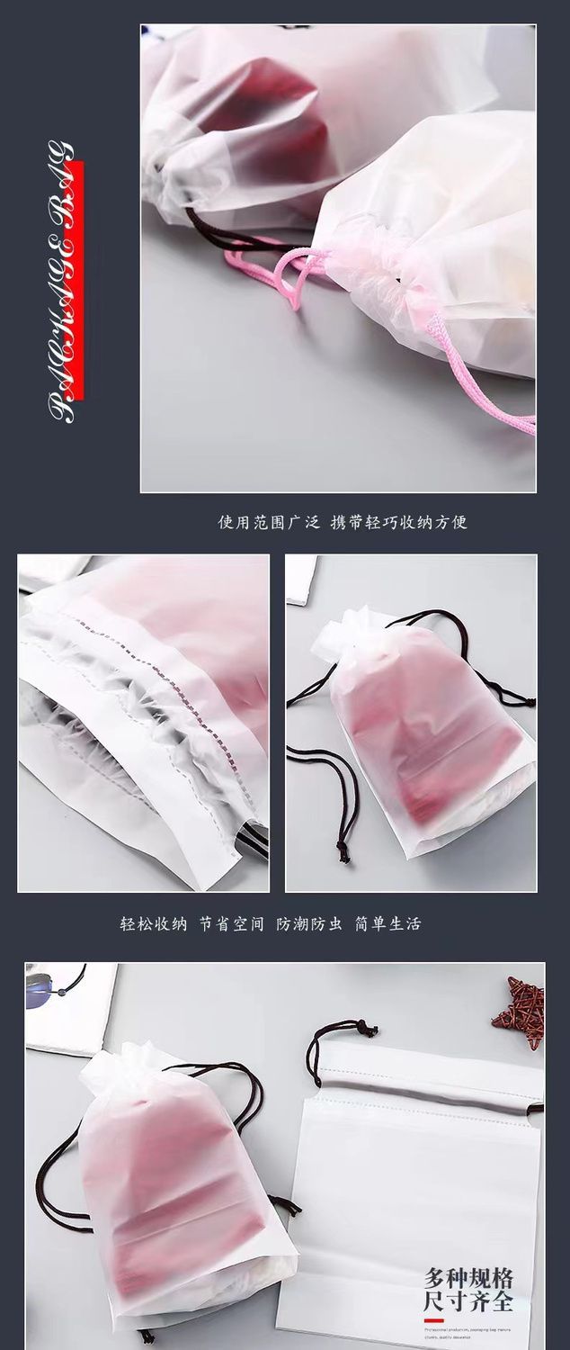 Pe bolso con cordón esmerilado al por mayor grueso ropa interior transparente calcetines zapatos ropa a prueba de polvo embalaje bolsa de almacenamiento de viaje