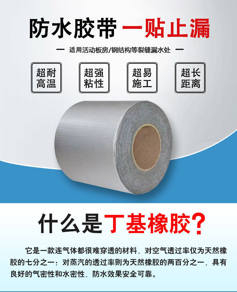 Fabricante butilo impermeable cinta de reparación de fugas engrosada auto-adhesivo butilo material enrollado color acero azulejo espacio de reparación material de sellado