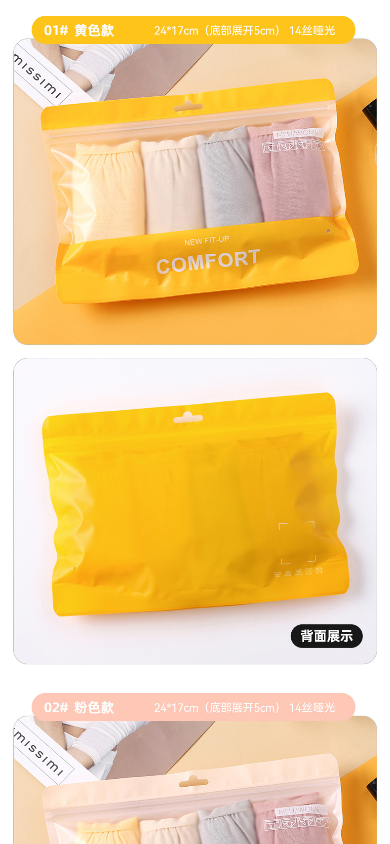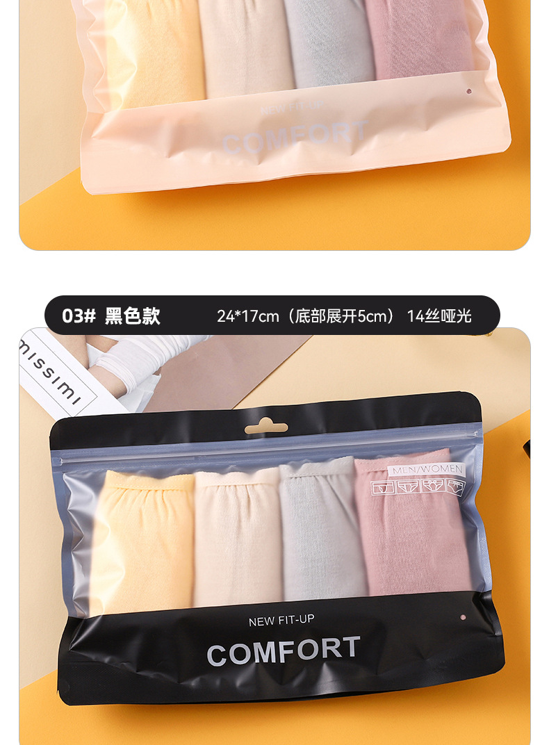 Bolsa de embalaje de ropa interior de paquete múltiple para hombres y mujeres 2-5 pack bolsa de ropa interior esmerilada alargada bolsa de cremallera negra