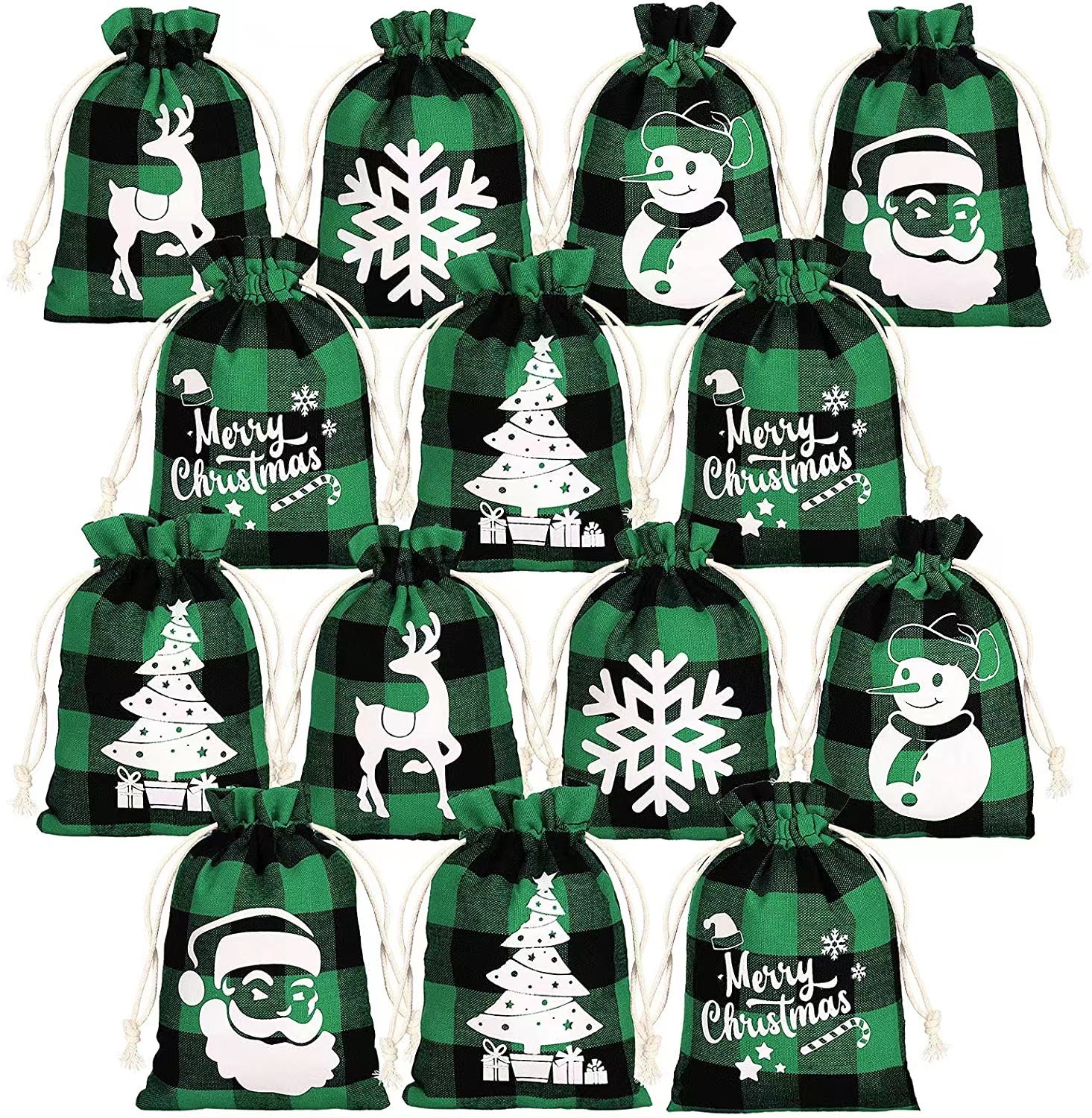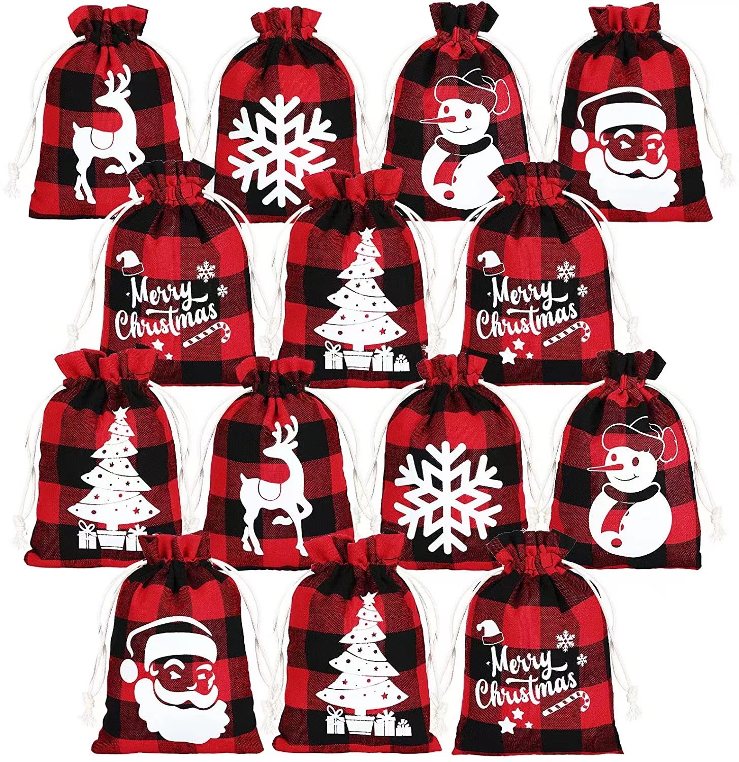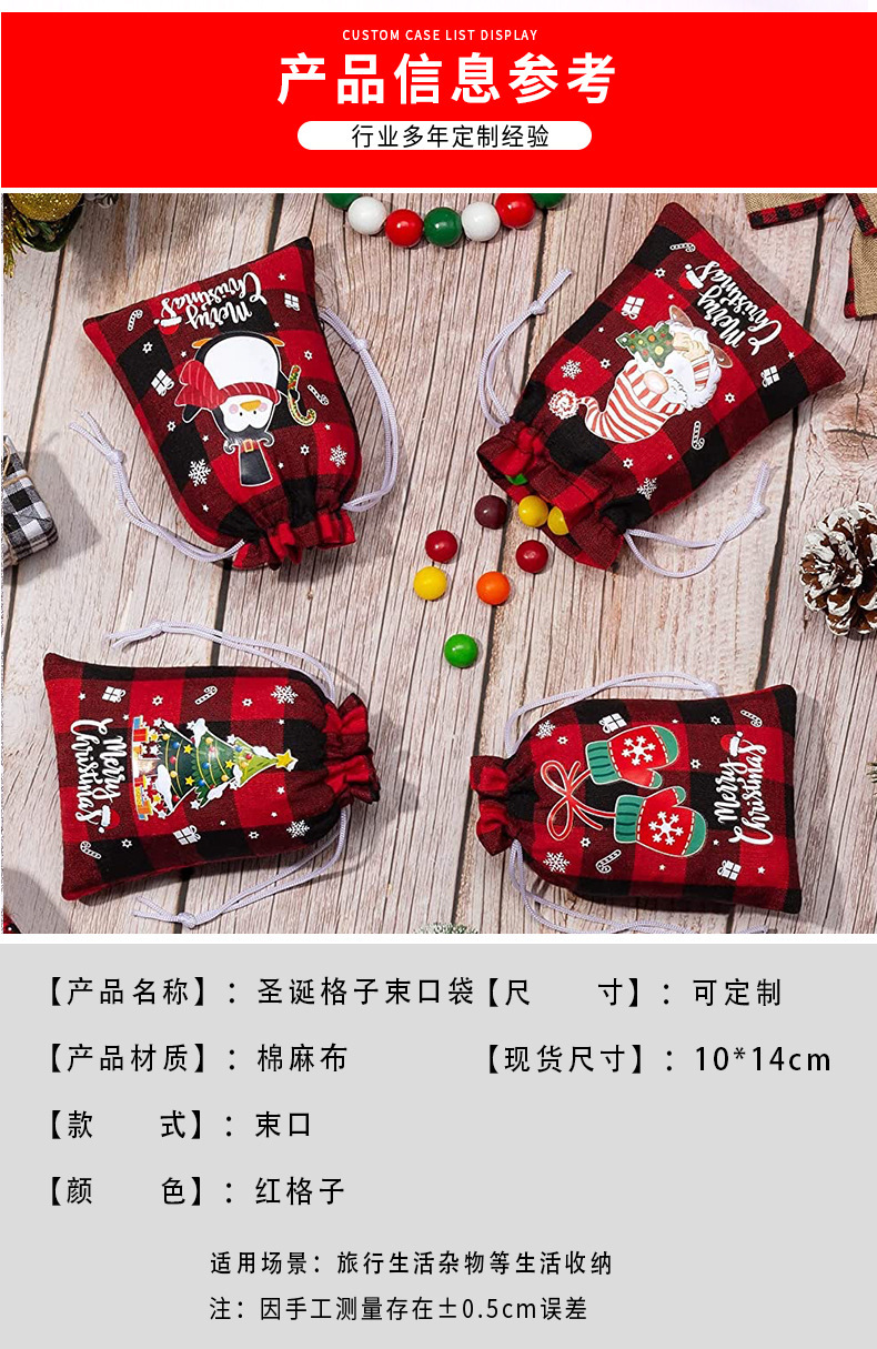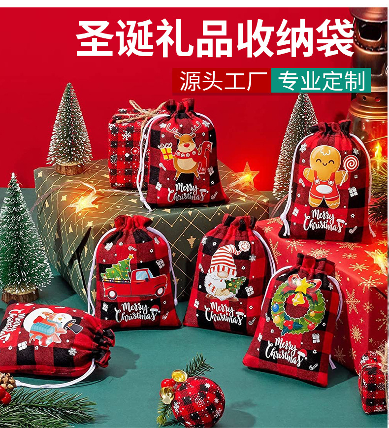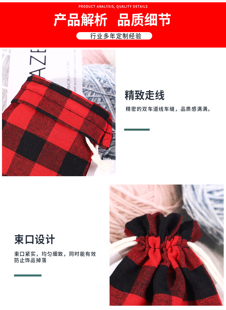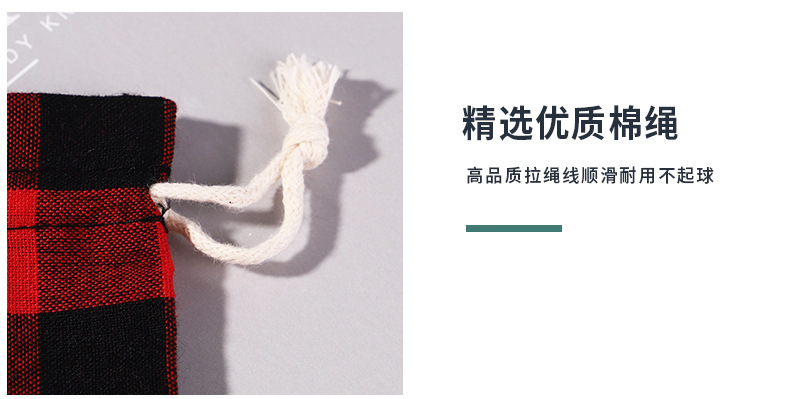 | Bolsillo con cordón de lino de Navidad | Bolsa de algodón a cuadros de Navidad al por mayor de fábrica bolsillo con cordón de lino y algodón |