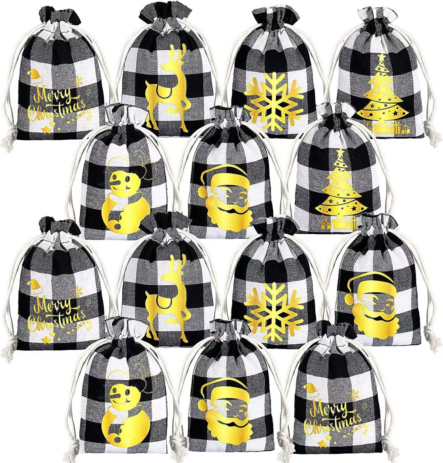 Bolsa de cordón de algodón a cuadros de navidad bolsa de regalo traje de cordón bolsa de embalaje de regalo de caramelo bolsa de regalo de cordón de navidad