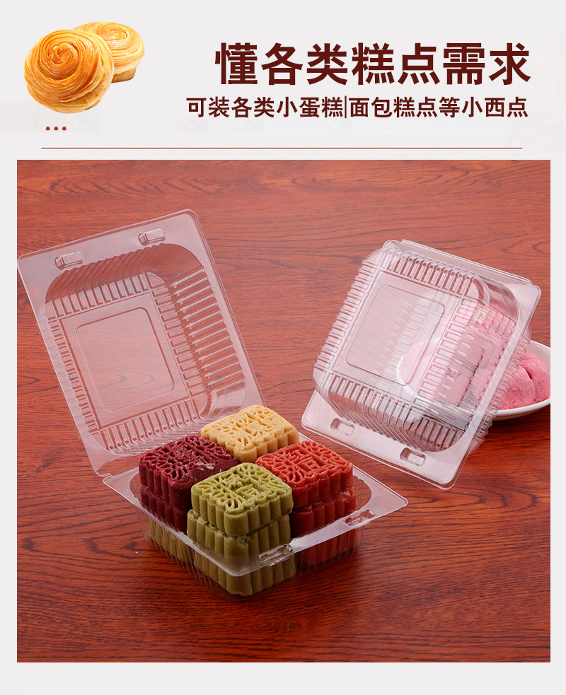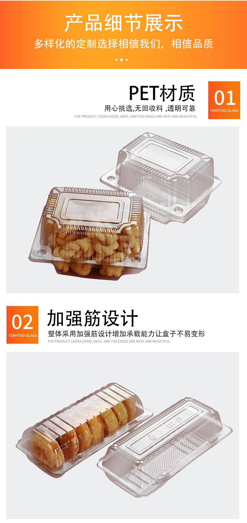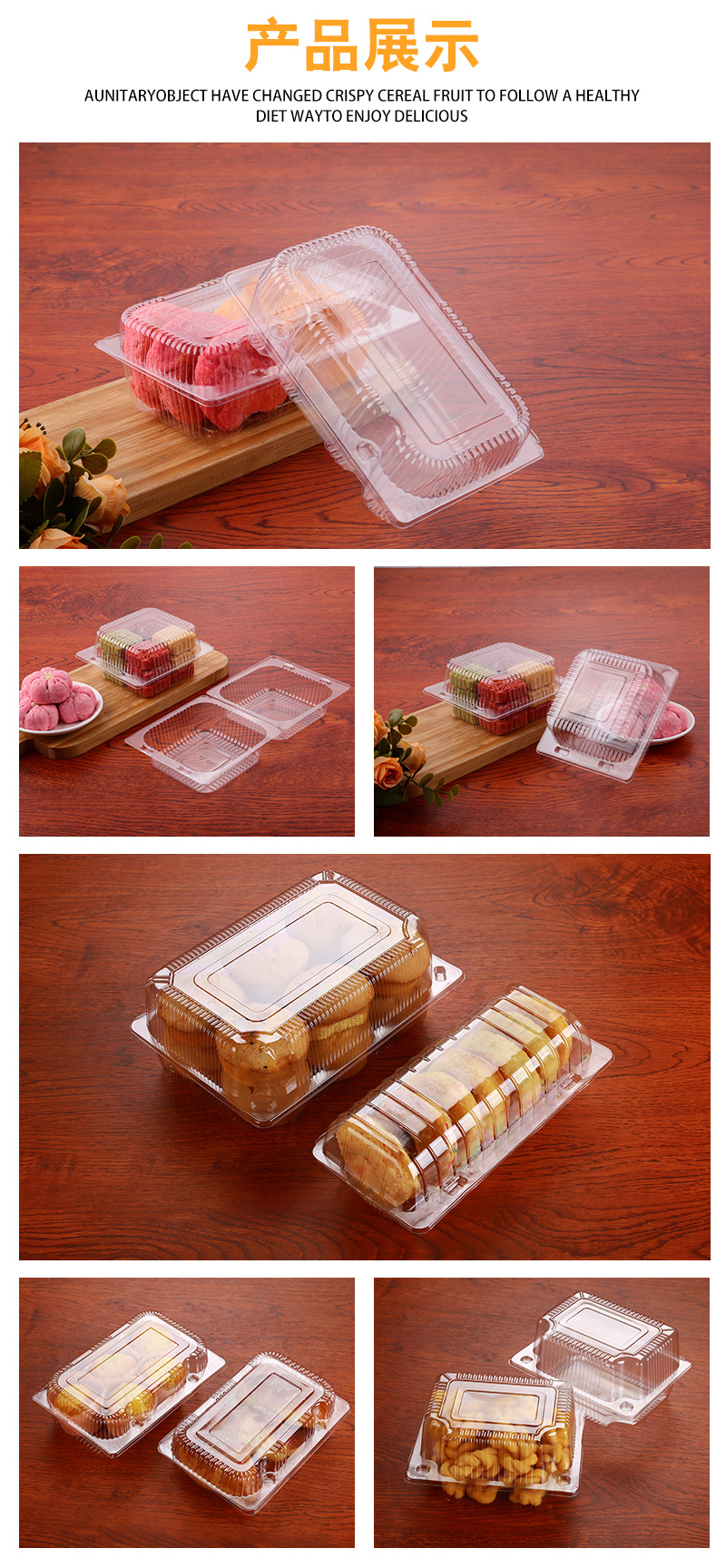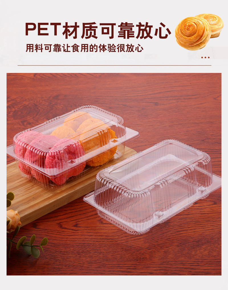 Caja de plástico desechable caja de pastelería transparente pastel melocotón hamburguesa ensalada caja rectangular rollo suizo caja de subenvasado