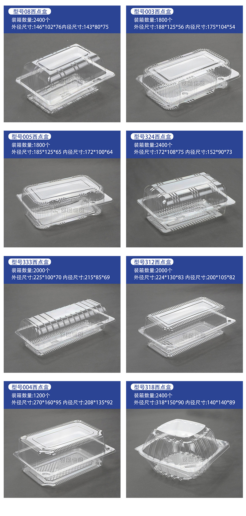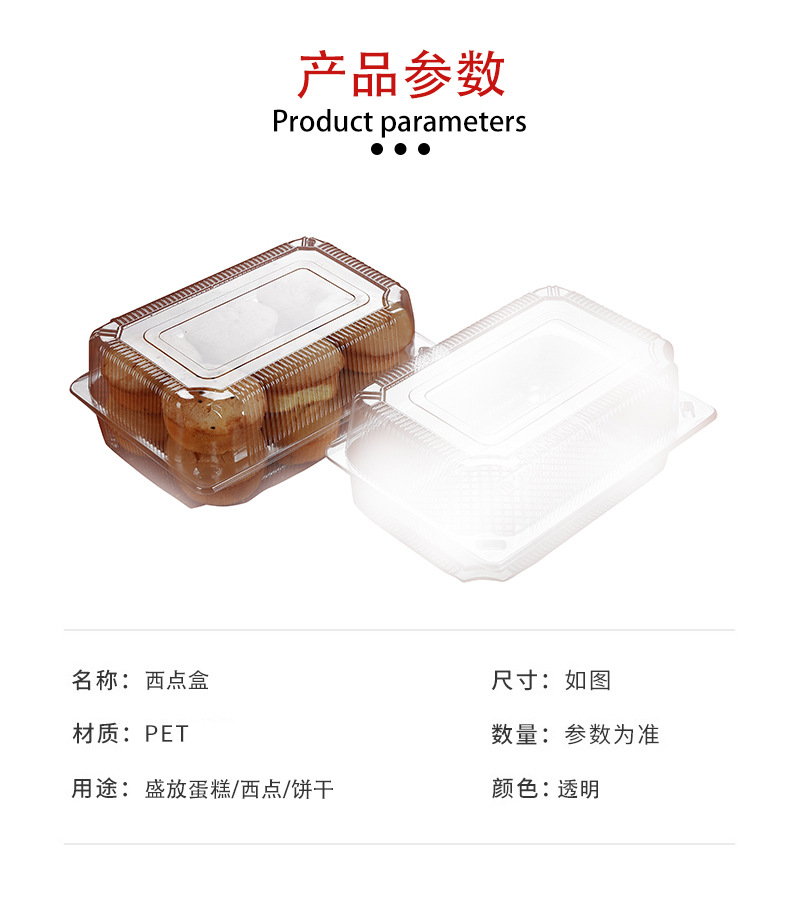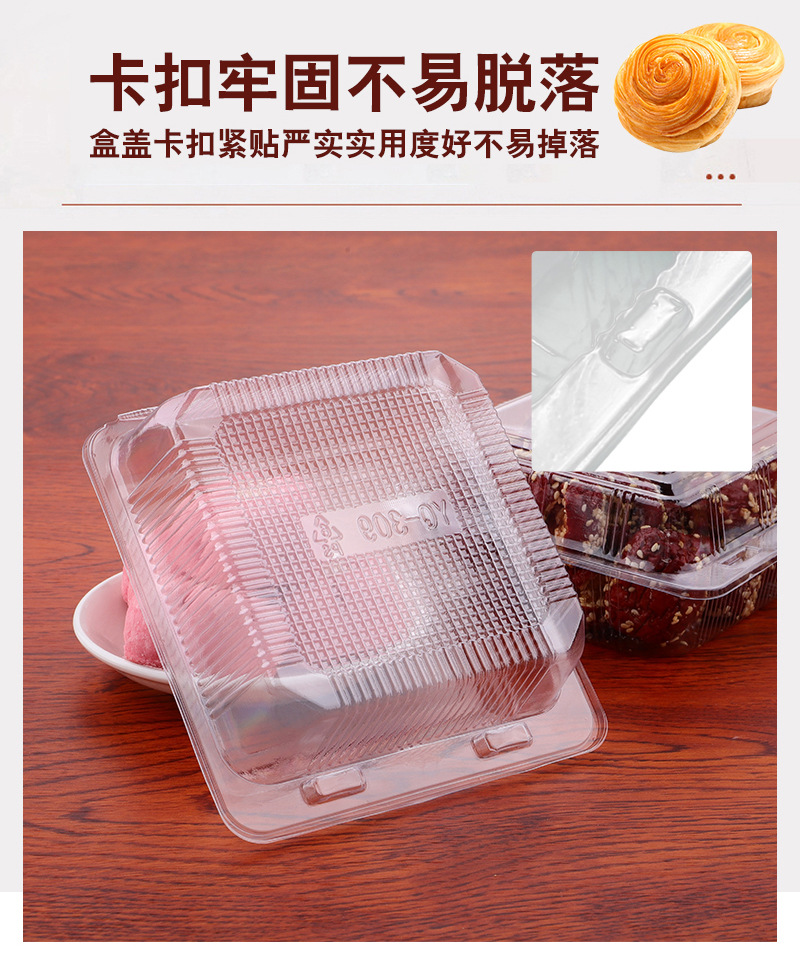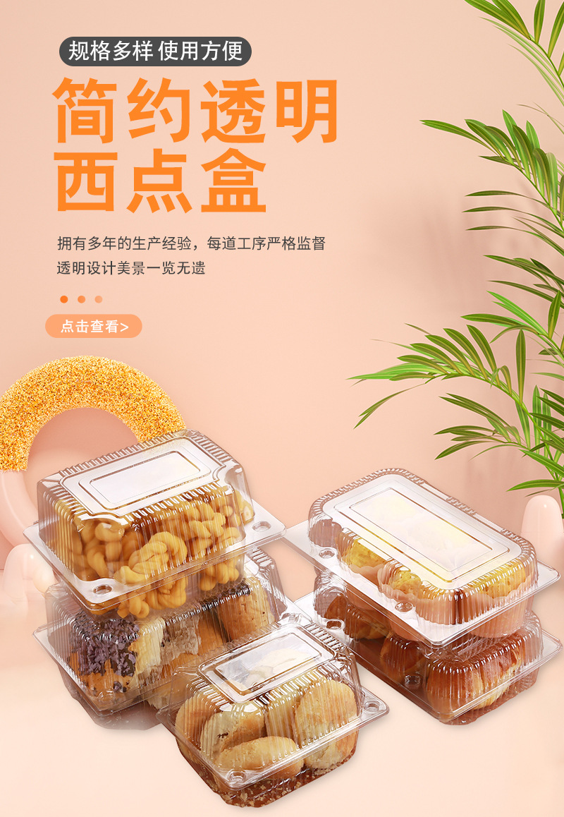 Caja de plástico desechable caja de pastelería transparente pastel melocotón hamburguesa ensalada caja rectangular rollo suizo caja de subenvasado