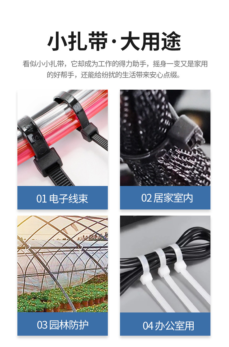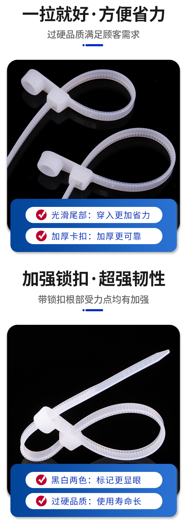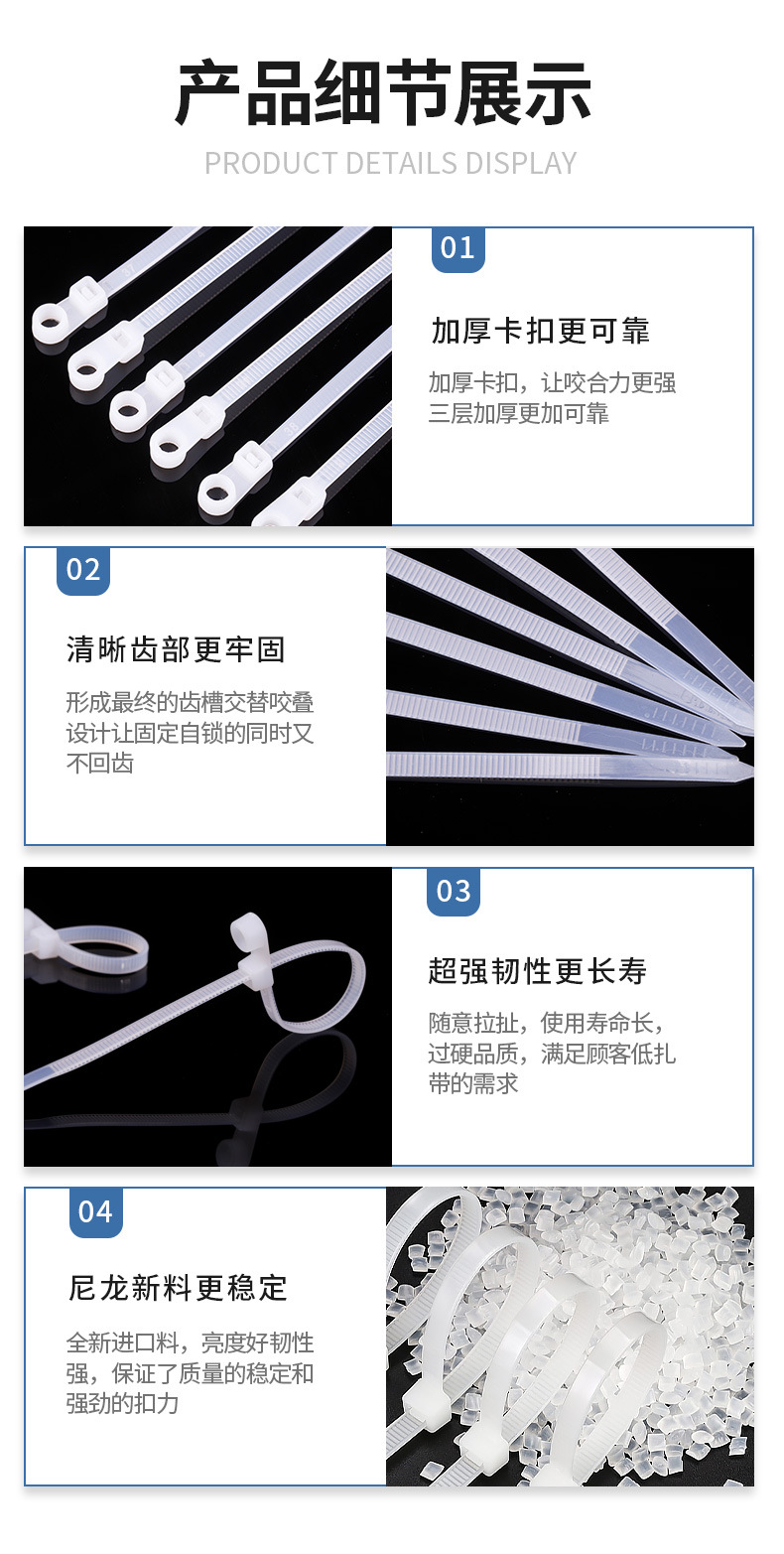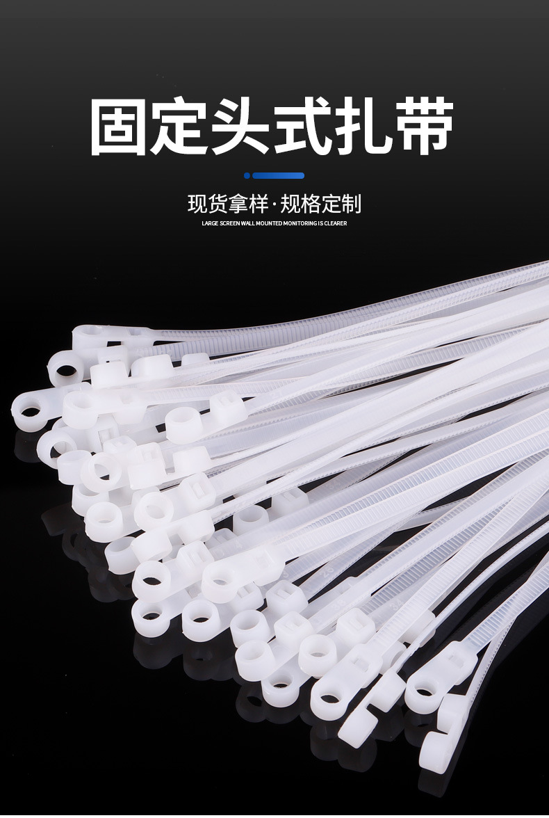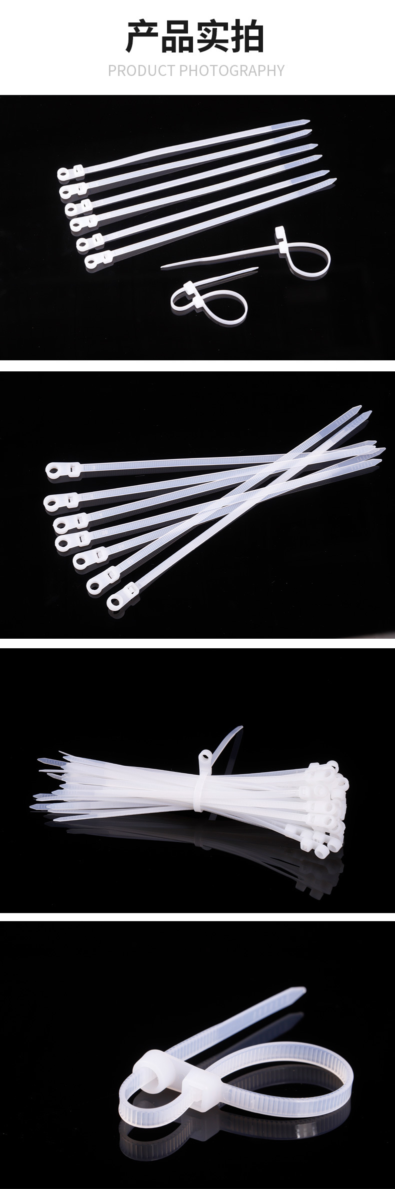 Corbata de cables de cabeza fija al por mayor de fábrica de bloqueo automático de nylon blanco y negro de doble agujero de bloqueo de cable de nylon