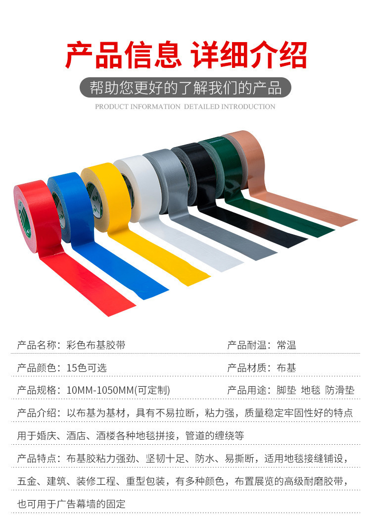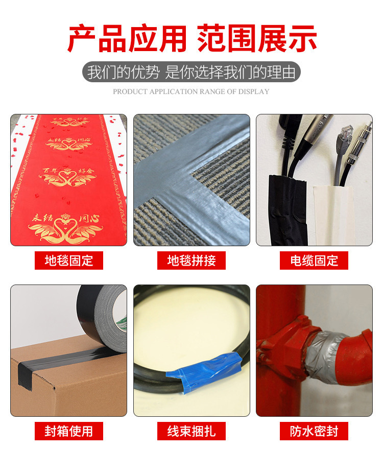 Cinta de color al por mayor de alta cinta de tela adhesiva de una sola cara fuerte impermeable boda exposición alfombra cinta de tela