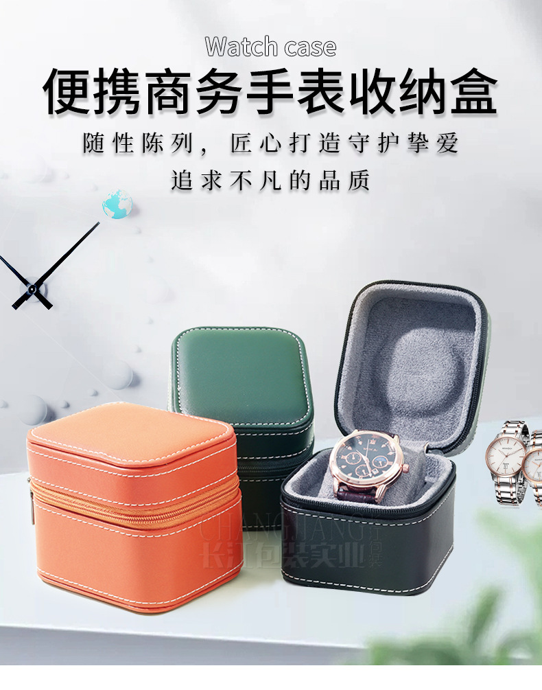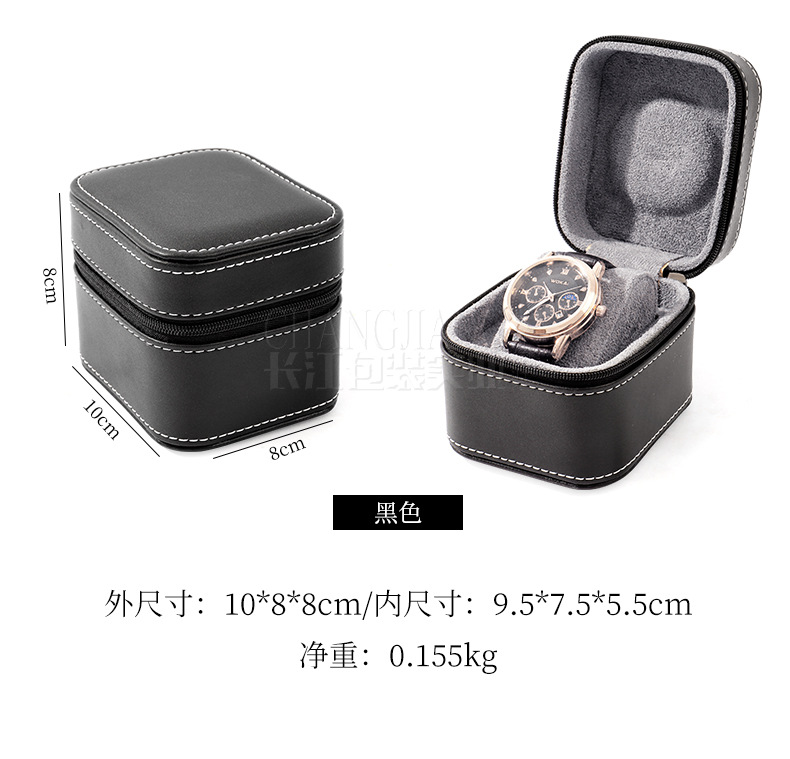 Caja de reloj de cuero de PU negro caja de almacenamiento de joyería reloj de negocios portátil caja de embalaje caja de reloj de joyería
