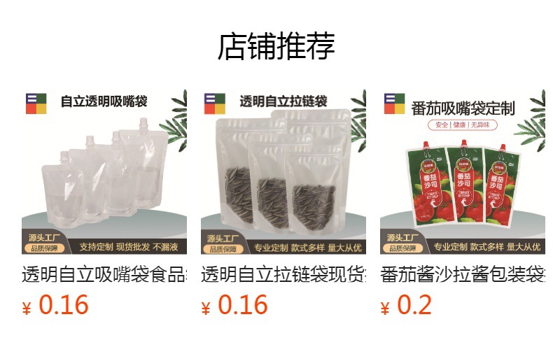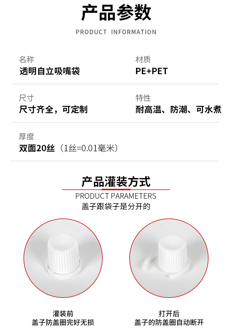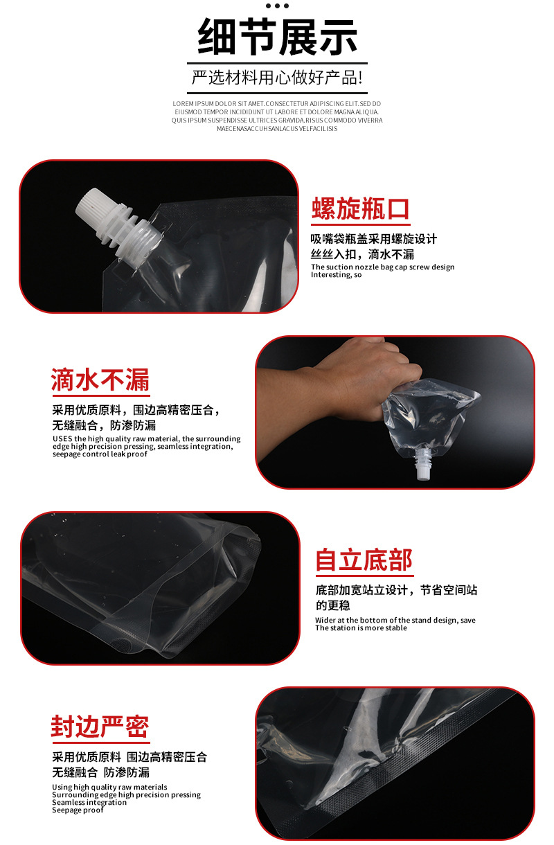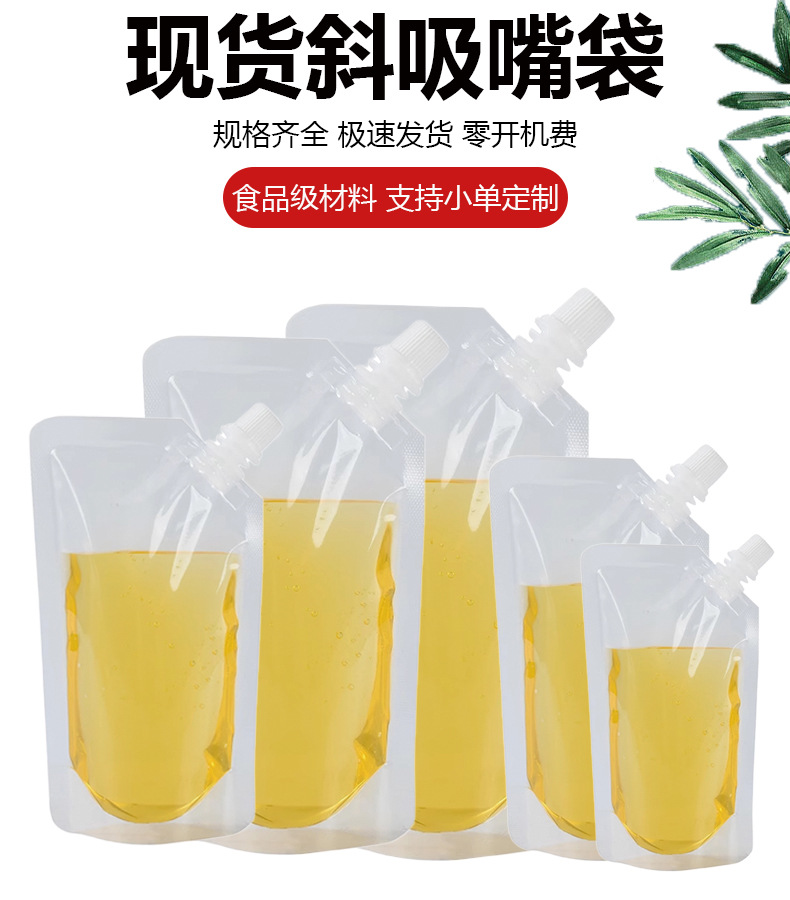 Bolsa de Medicina China desechable en stock sellado compuesto PE plástico grado alimenticio transparente auto-permanente boca oblicua boquilla de succión bolsa de sopa bolsa de embalaje