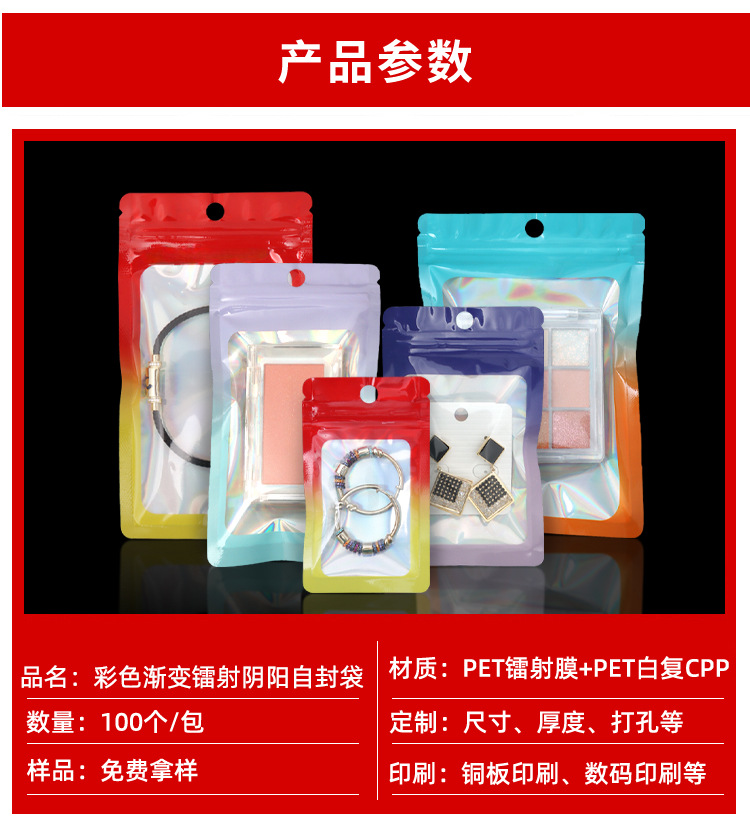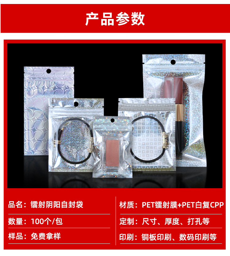 Película láser Symphony Bolsa de hueso yin y yang Bolsa ziplock con láser Bolsa sellada de joyería degradada pequeña 14 Bolsa sellada de joyería de seda