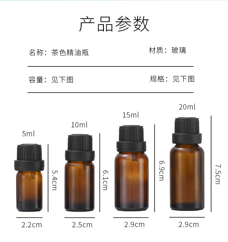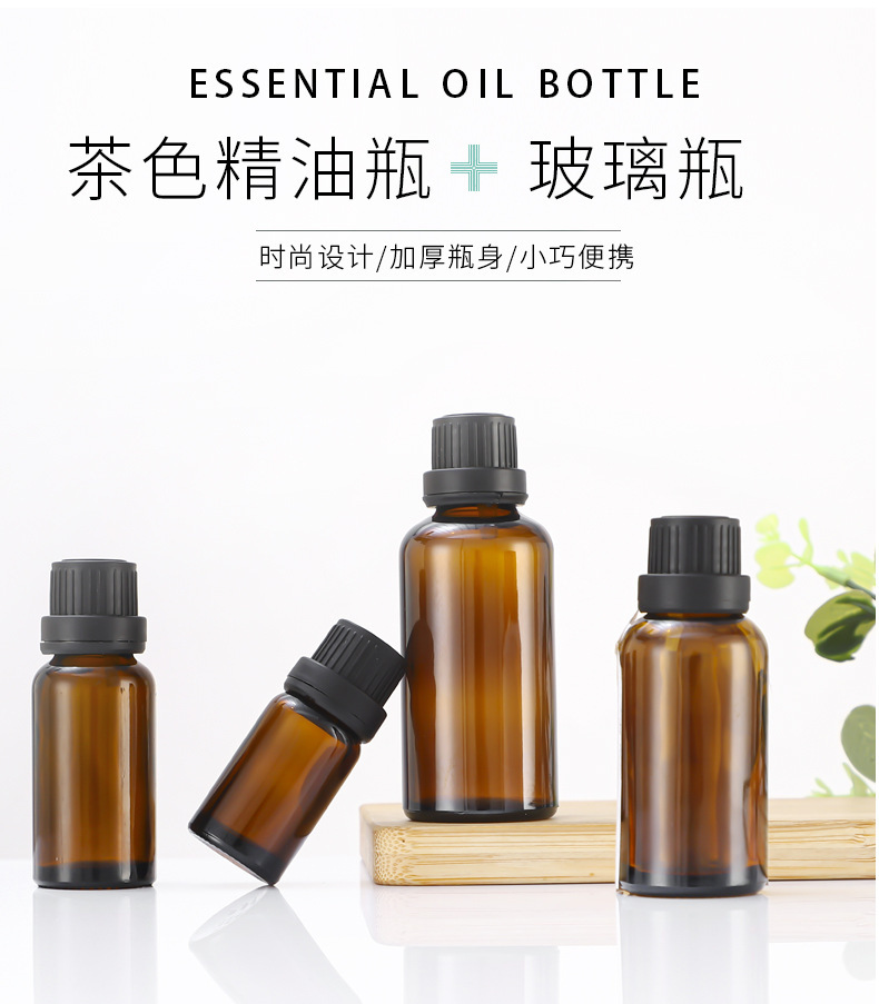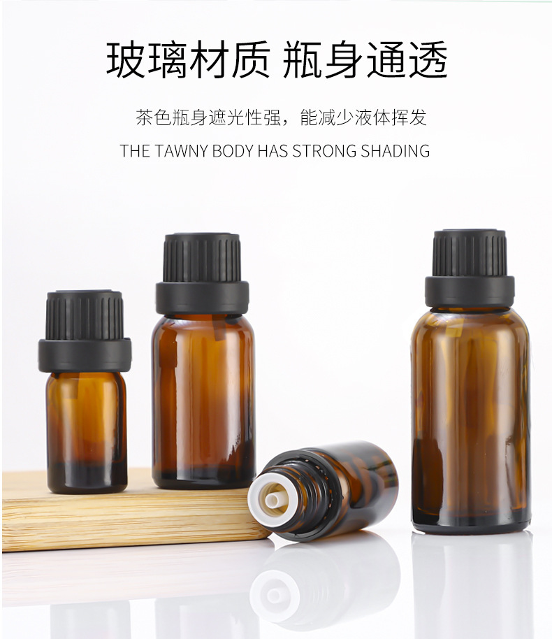 Cubierta antirrobo 10ml Brown botella de aceite esencial 20ml botella de vidrio 5ml botella cuentagotas perfume sub-embalaje botella de vidrio de aromaterapia
