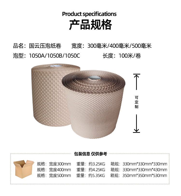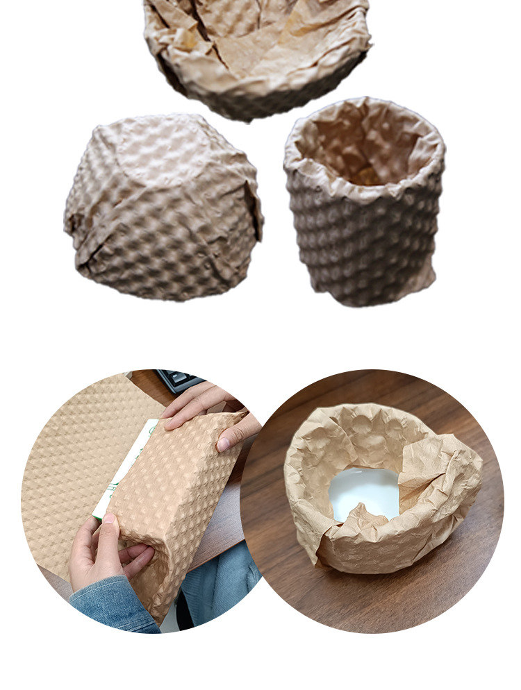 Color natural de la piel de vaca de espuma rollo de papel amortiguador resistente a los golpes vintage caja de regalo de embalaje a prueba de presión amortiguador de papel burbuja protección del medio ambiente degradable