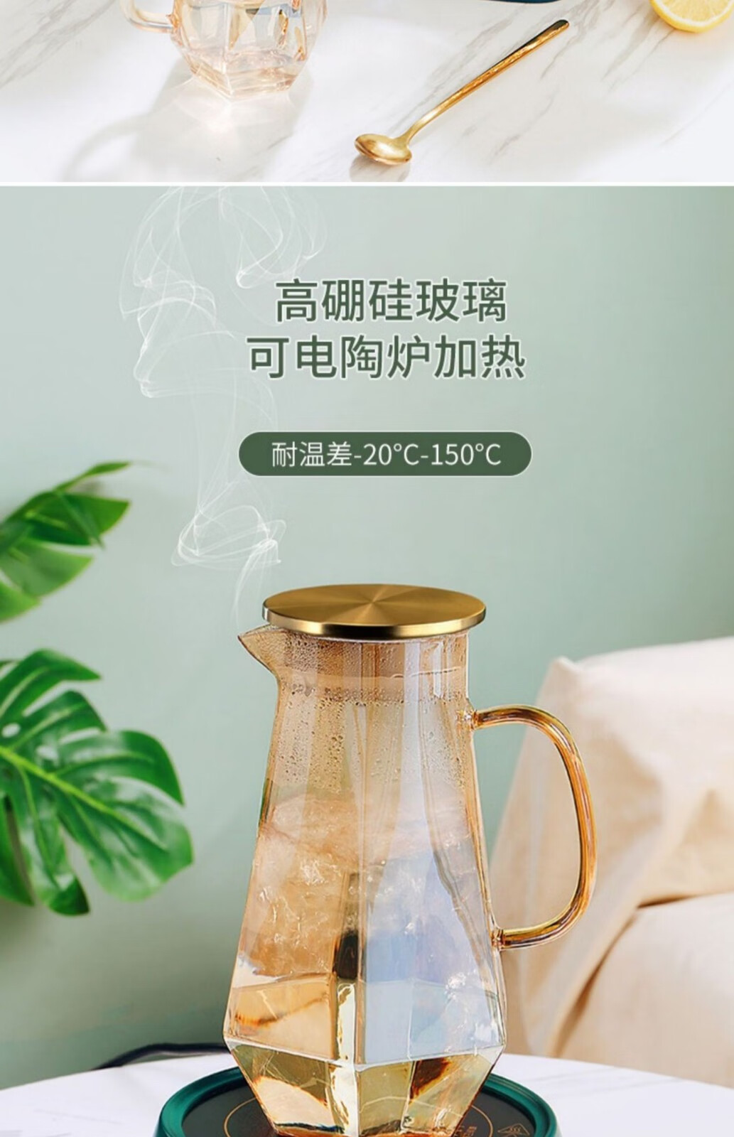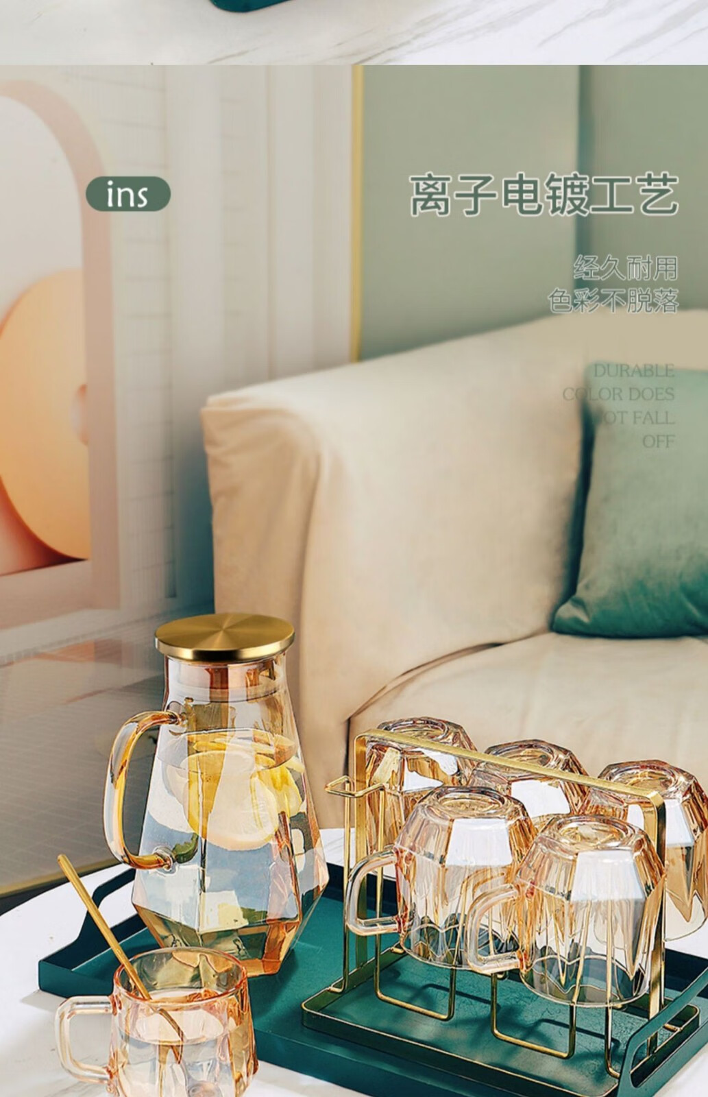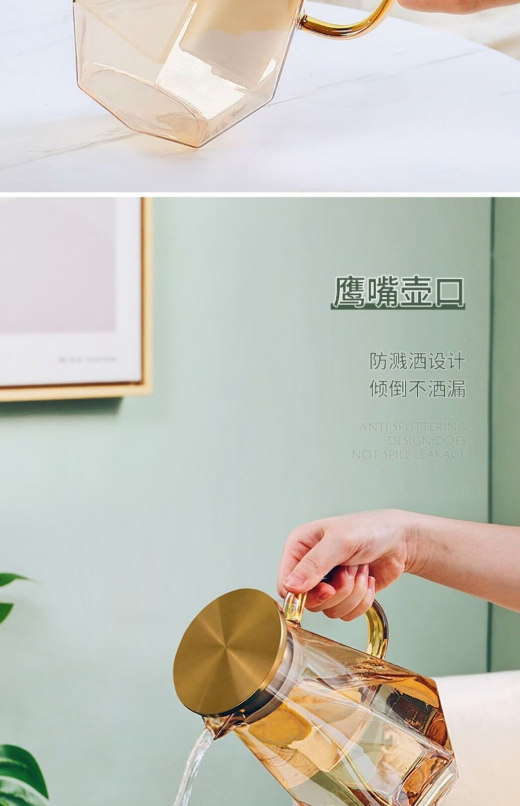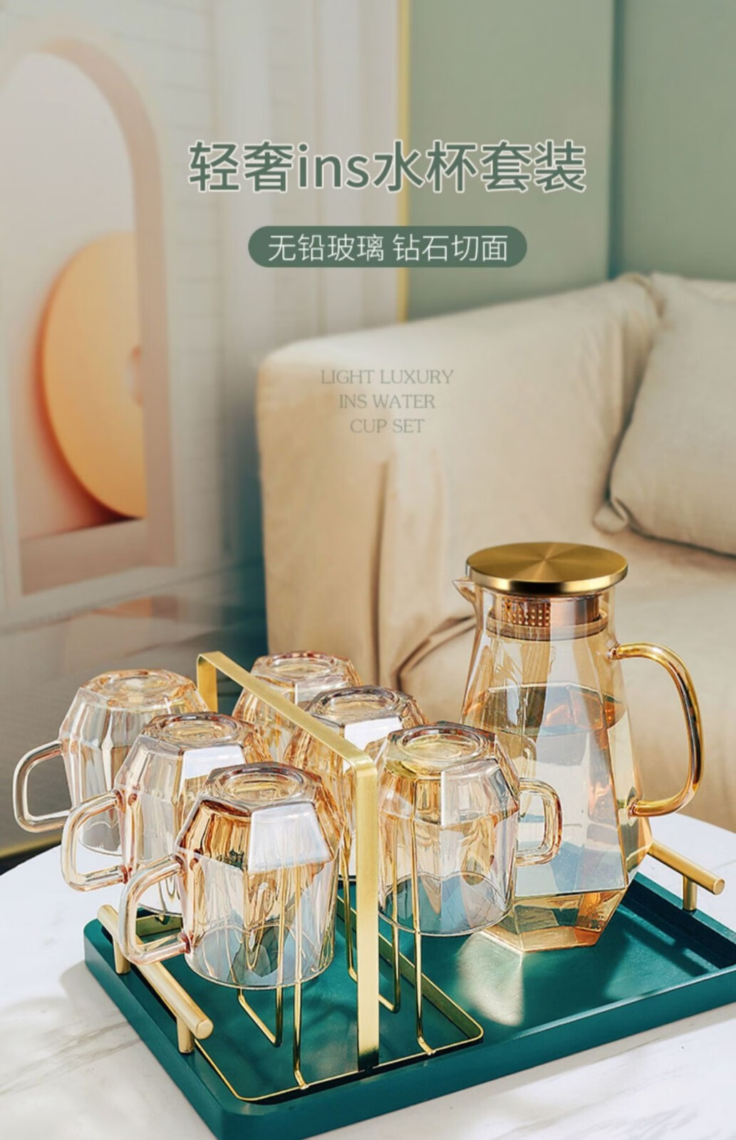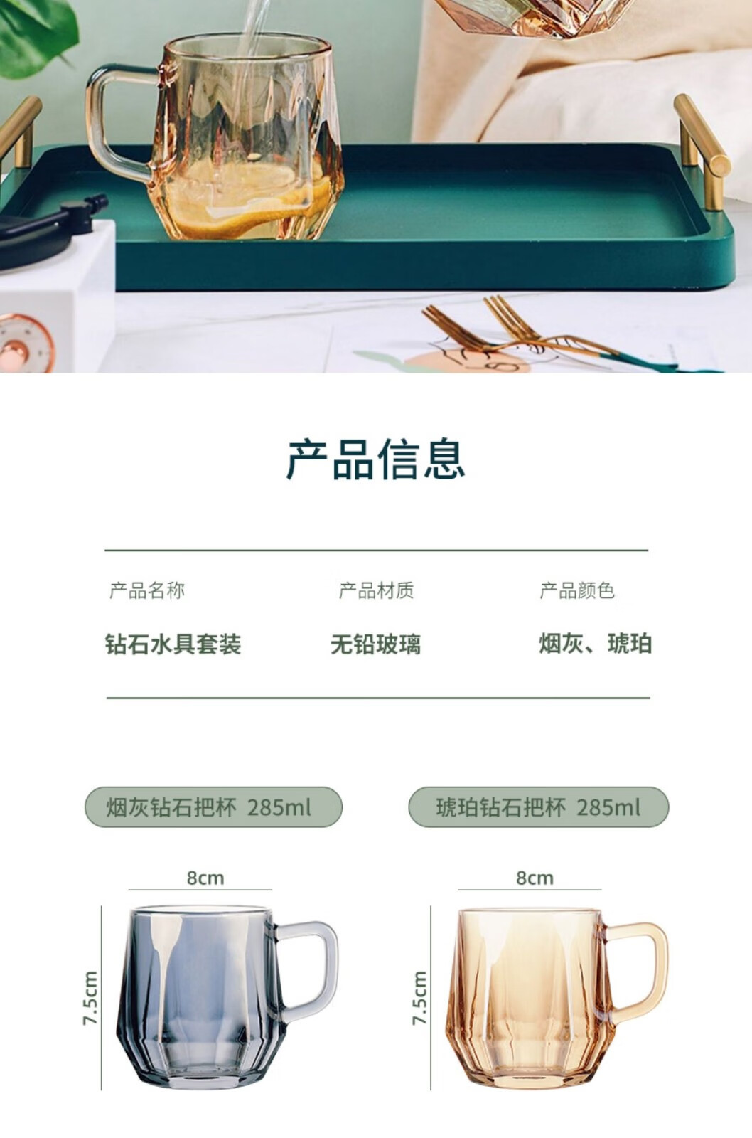 Vaso de cristal de diamante de lujo ligero ámbar, taza de agua para el hogar con asa, taza de té resistente al calor para la sala de estar, juego de taza de agua potable