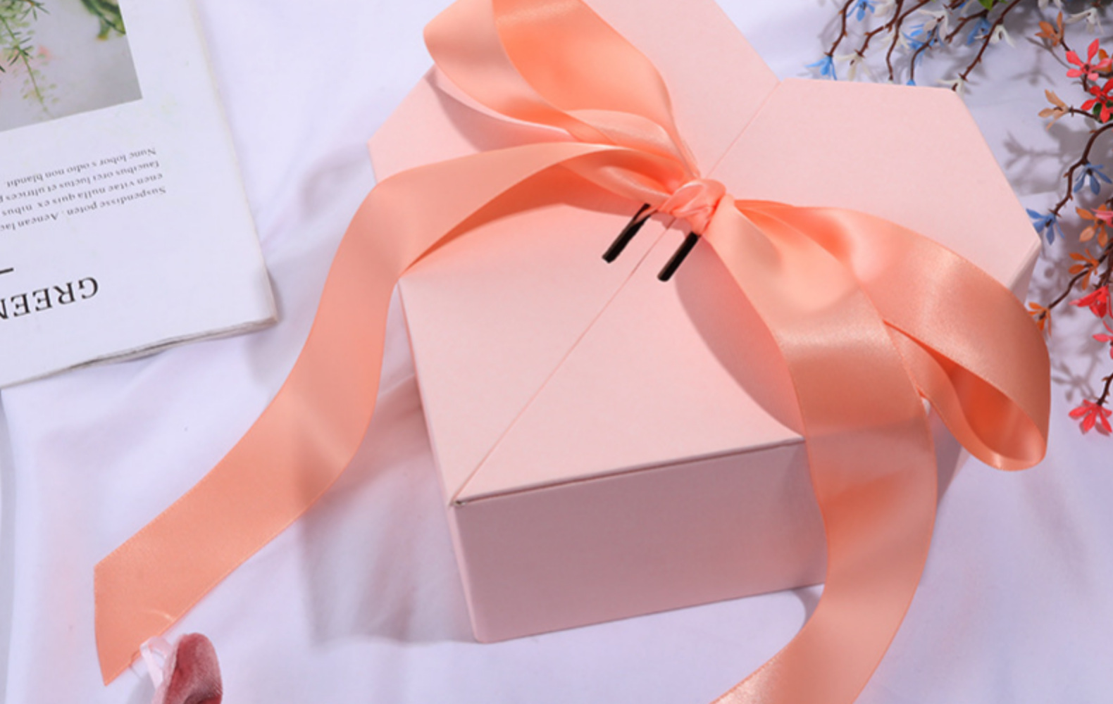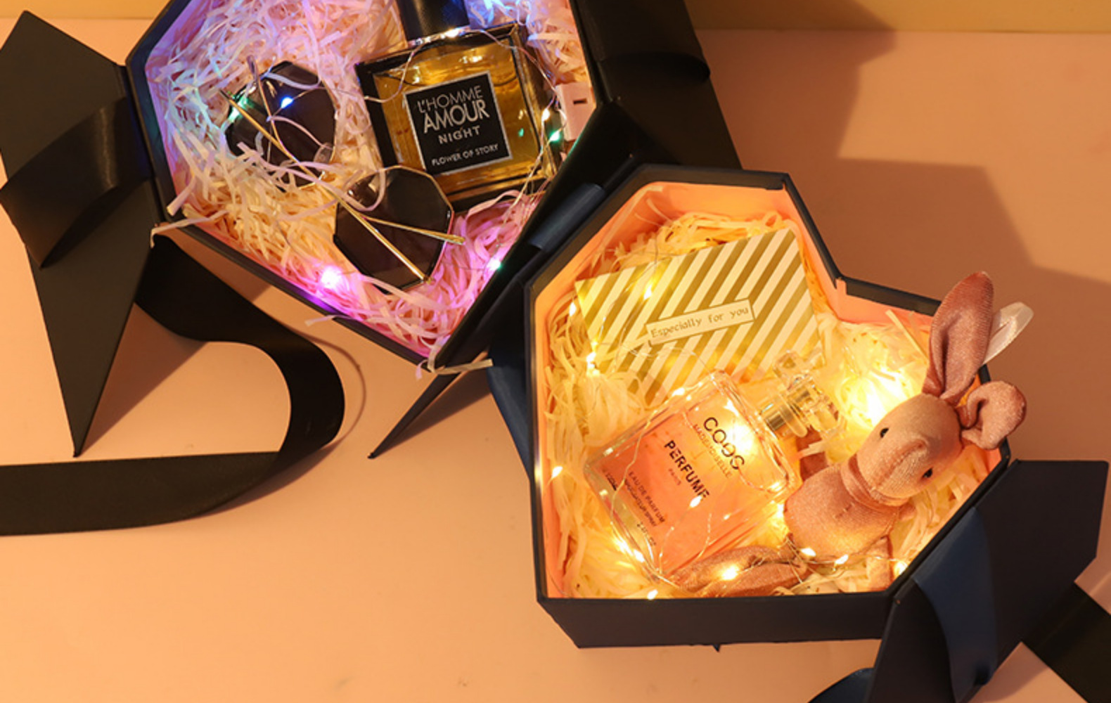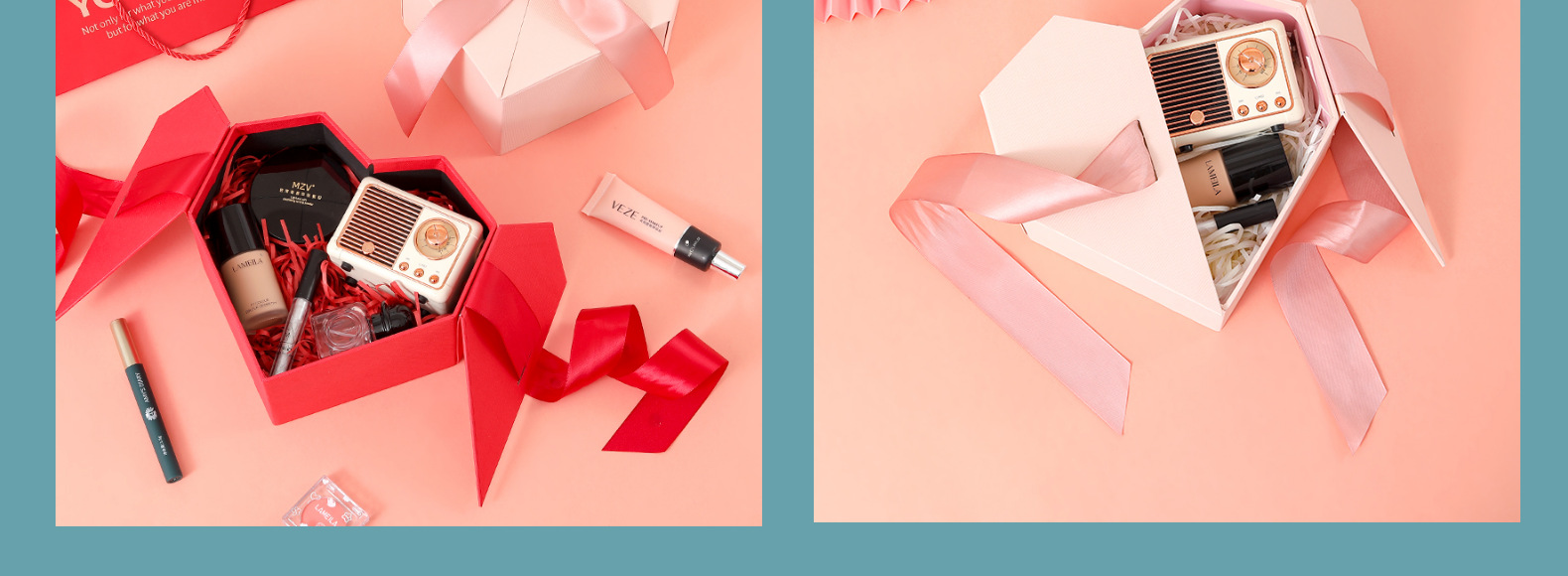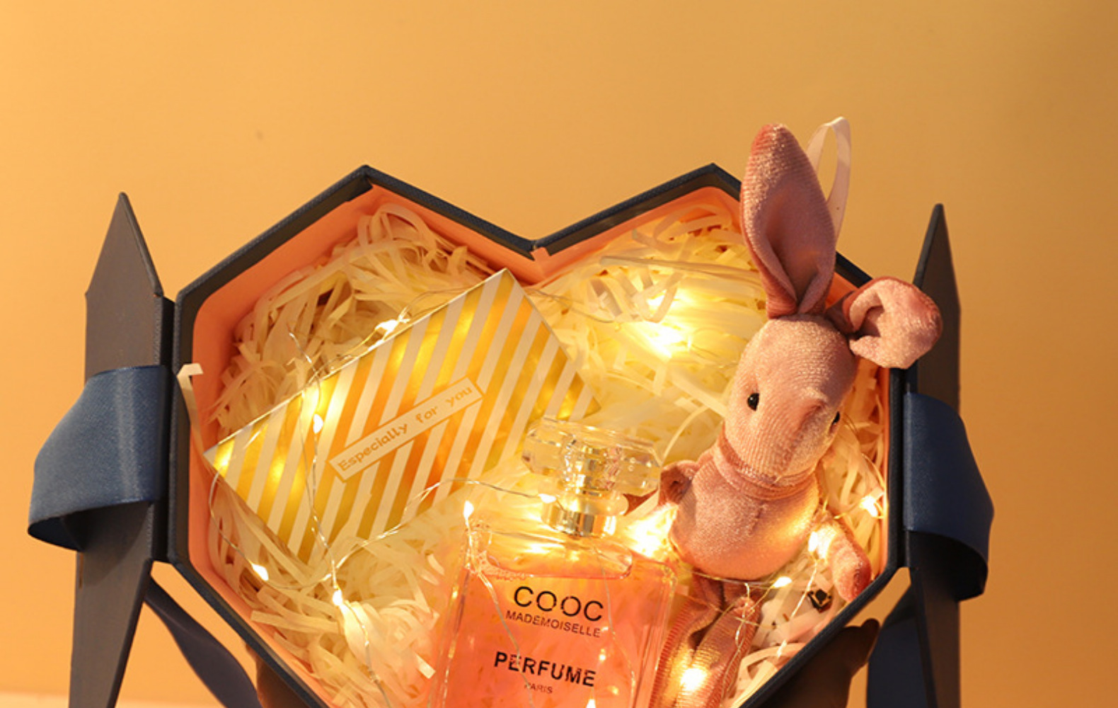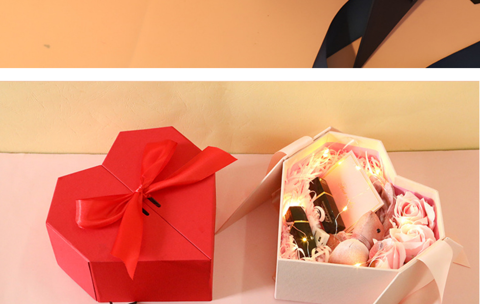 Caja de regalo con lazo de cinta en forma de corazón, caja de regalo para bodas, caja de regalo para cosméticos navideños, caja de regalo en forma de corazón