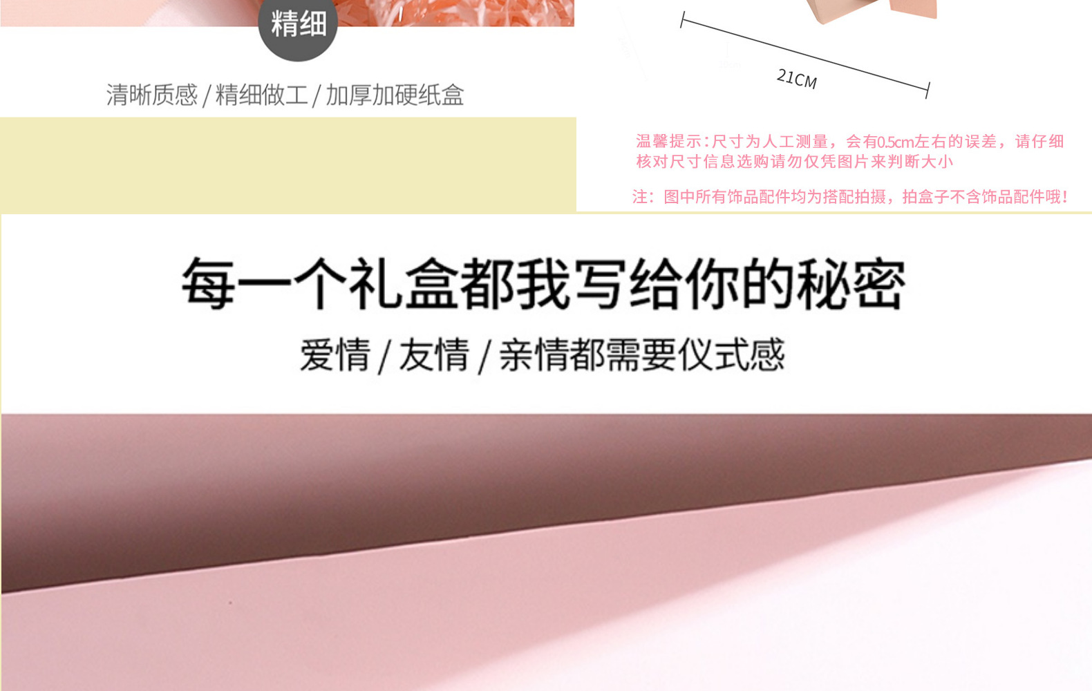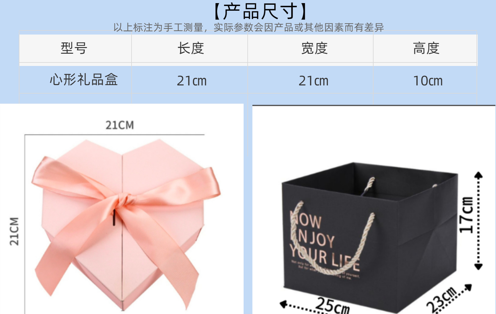 | Especificación | Caja vacía 21*21*10㎝,Bolsa de regalo 25*24*15cm |