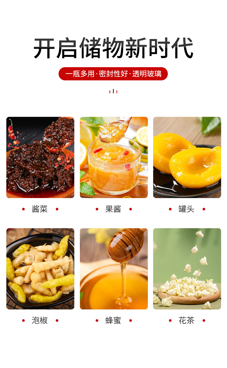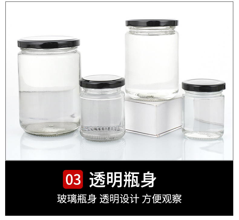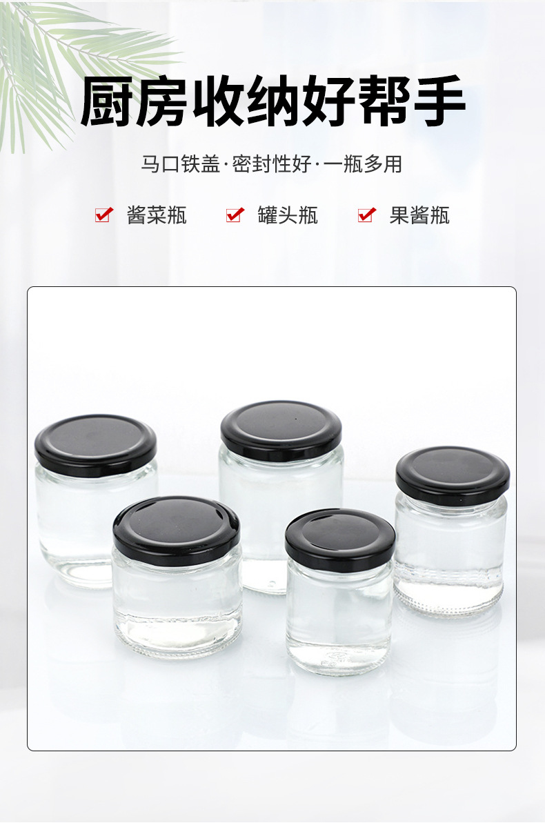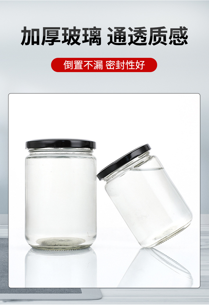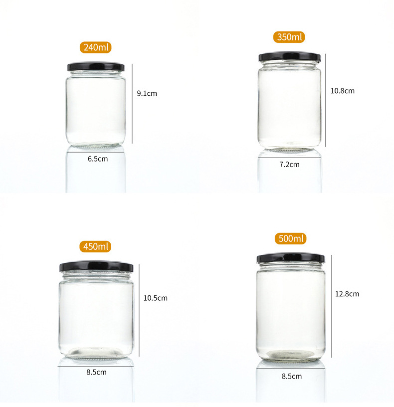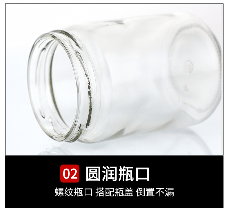 Puede botella de vidrio botella de encurtidos botella sub-botella redonda botella vacía mermelada salsa de Chile botella de miel en stock al por mayor
