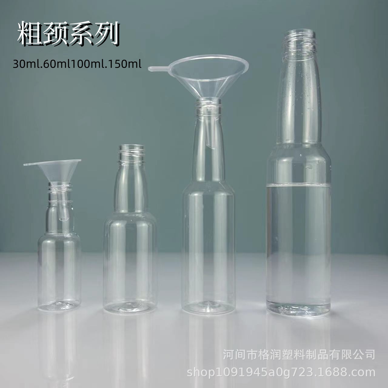 Botella de soda de 30mlpet 100ml botella de plástico con tapa de aluminio 150ml botella de cuello largo transparente 50ml botella de vino de plástico