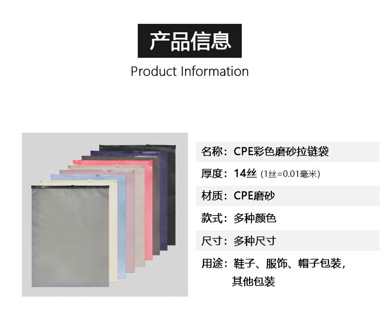 Negro CPE color esmerilado cremallera de plástico ropa opaco sombreado bolsa de embalaje suministros privados bolsa de embalaje