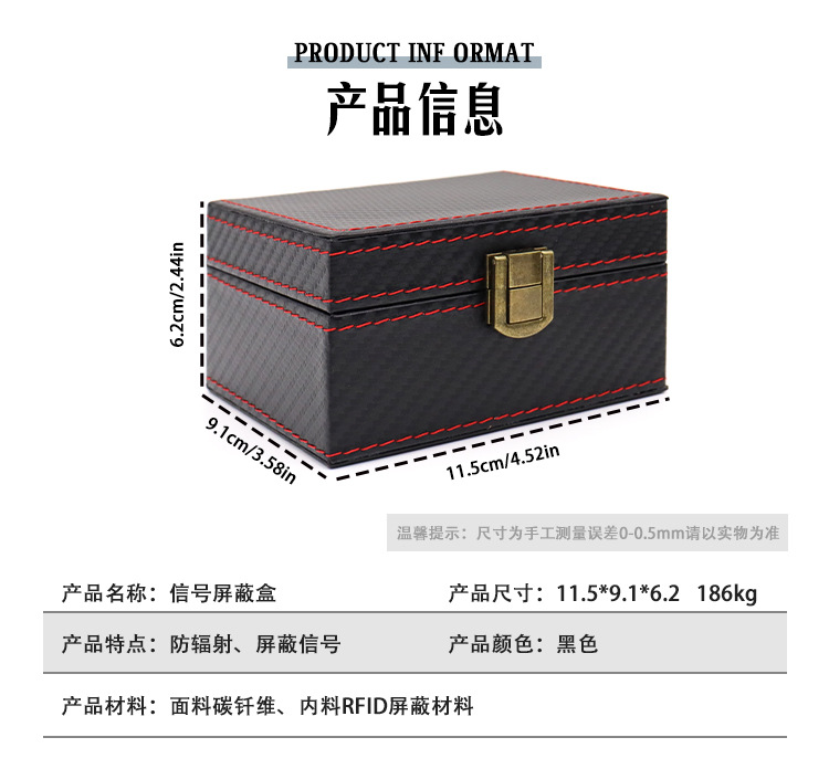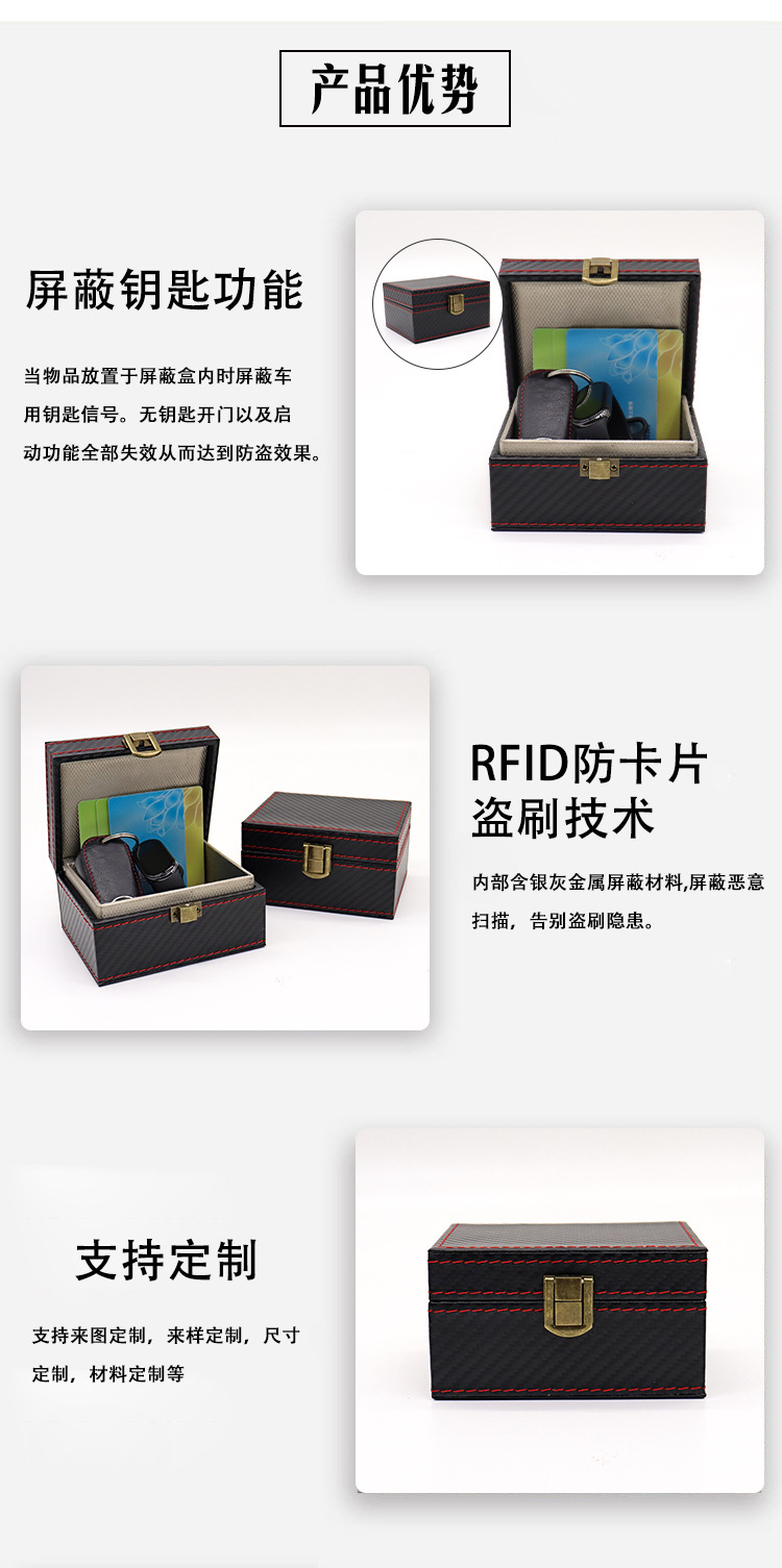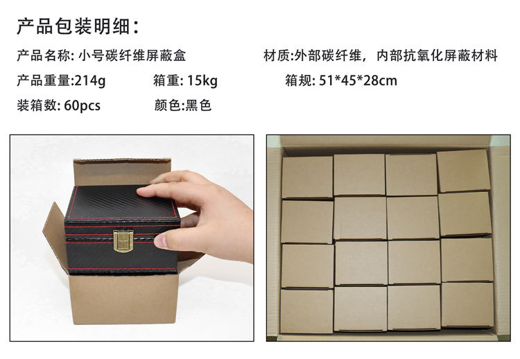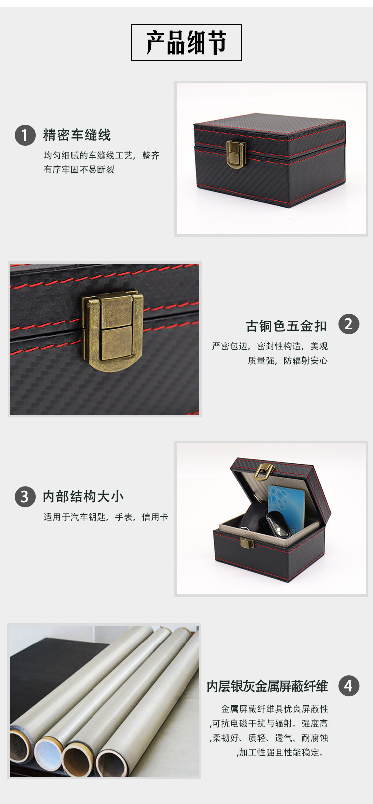 Nueva caja de blindaje RFID con patrón de fibra de carbono pequeño, caja de blindaje de señal de llave de coche, caja de blindaje antihuellas dactilares antioxidante