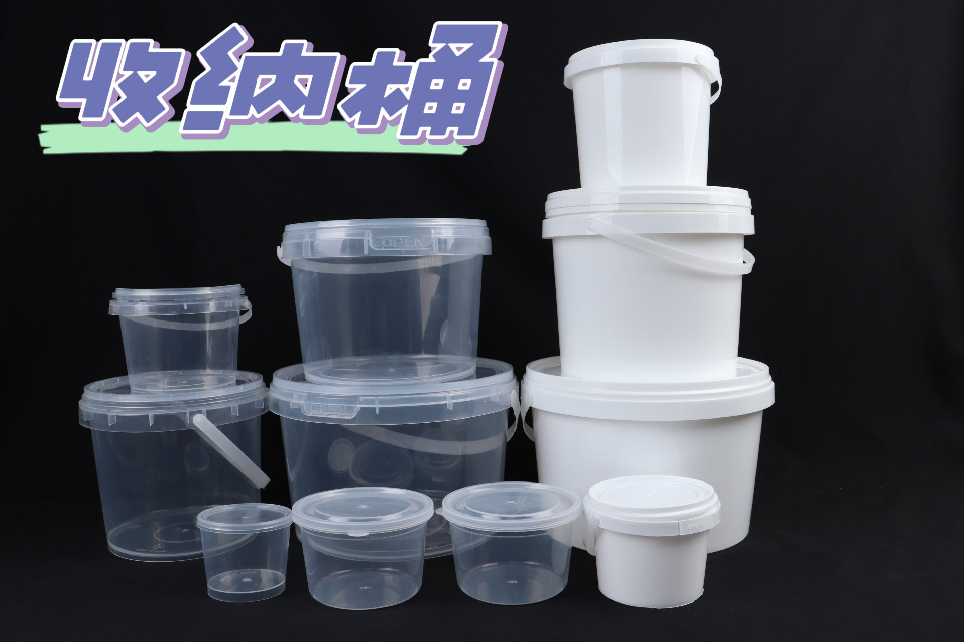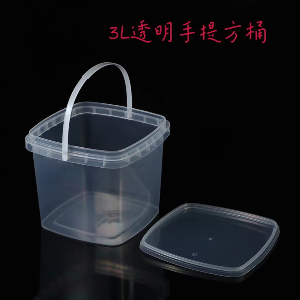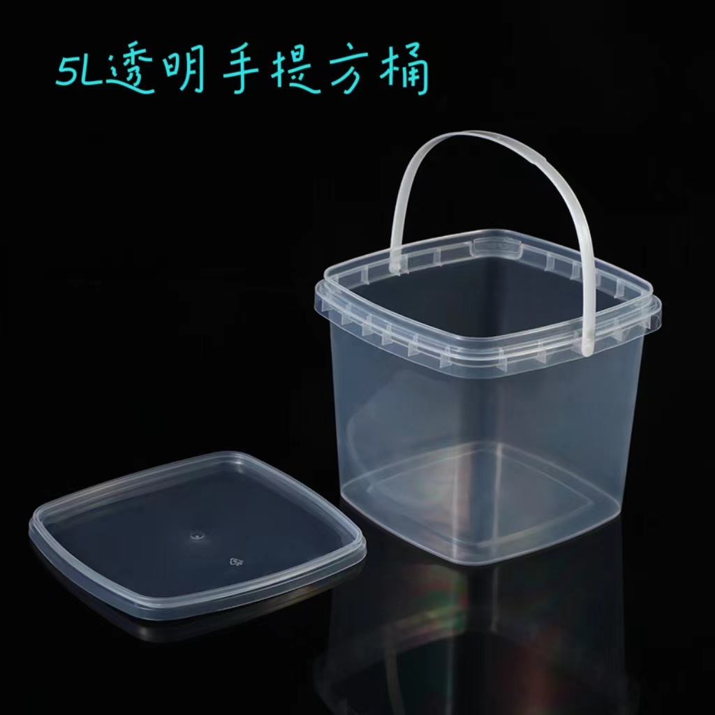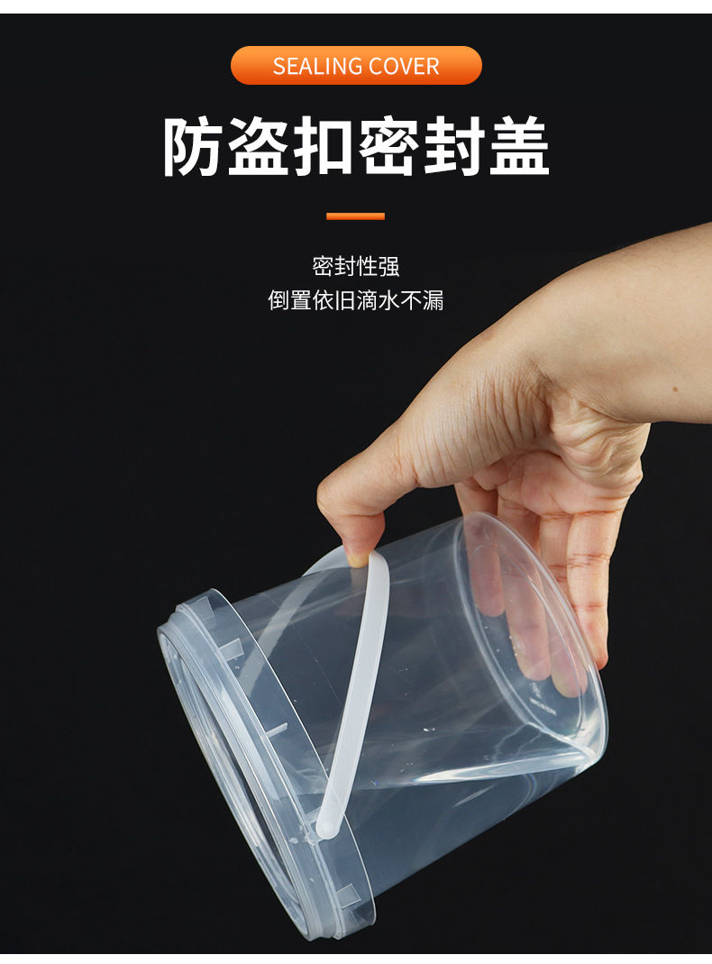 Cubo blanco transparente al por mayor transfronterizo, cubo redondo de plástico, cubo sellado de almacenamiento de calidad alimentaria engrosado, cubo de almacenamiento de embalaje