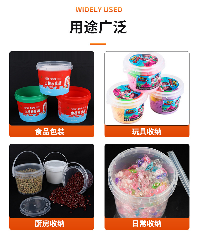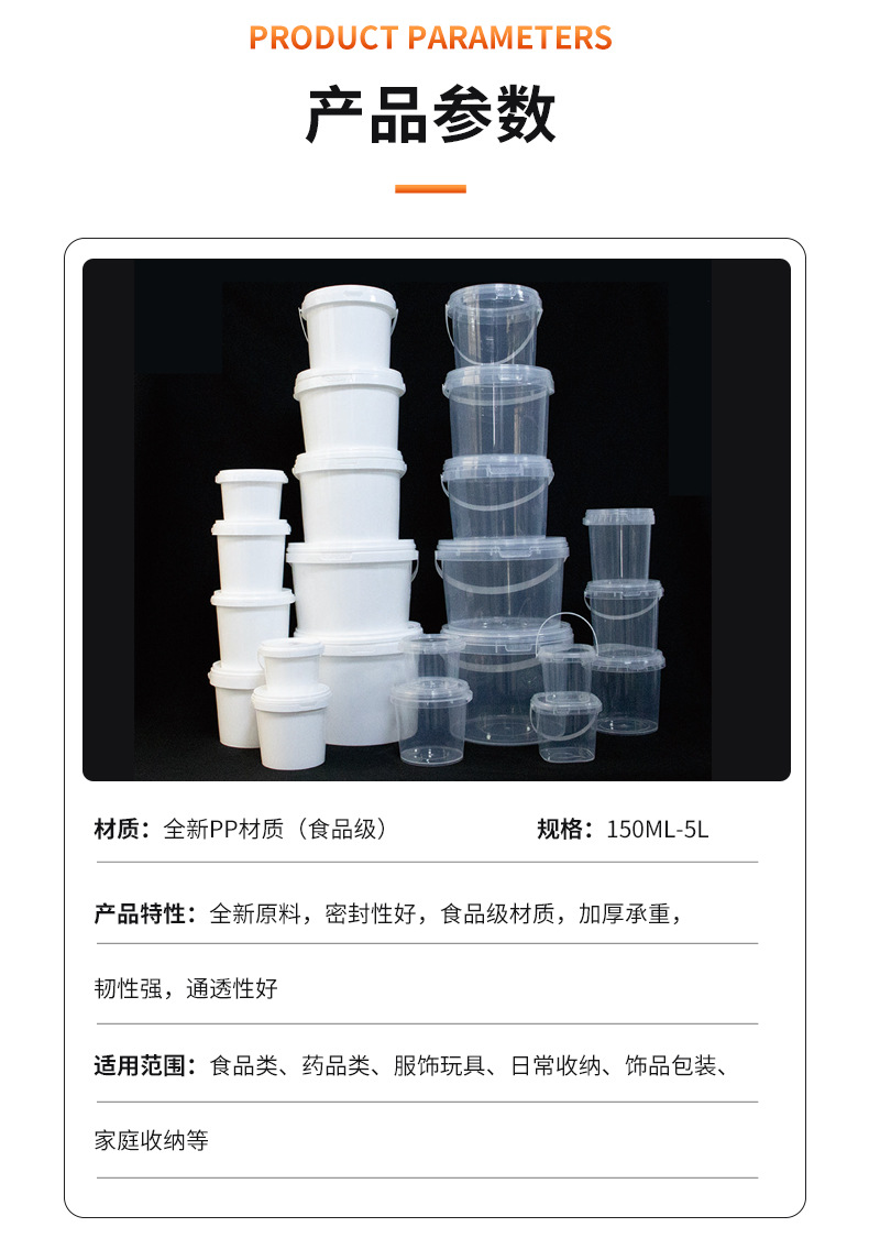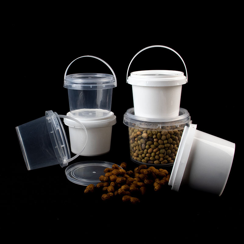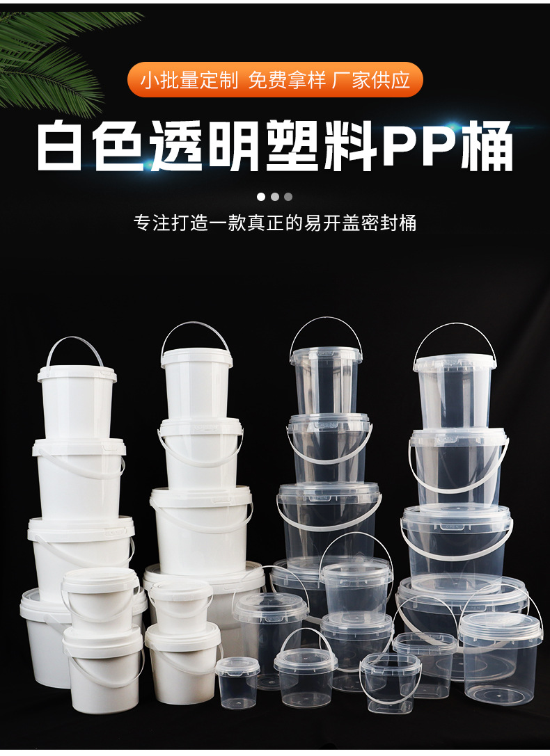 Cubo blanco transparente al por mayor transfronterizo, cubo redondo de plástico, cubo sellado de almacenamiento de calidad alimentaria engrosado, cubo de almacenamiento de embalaje
