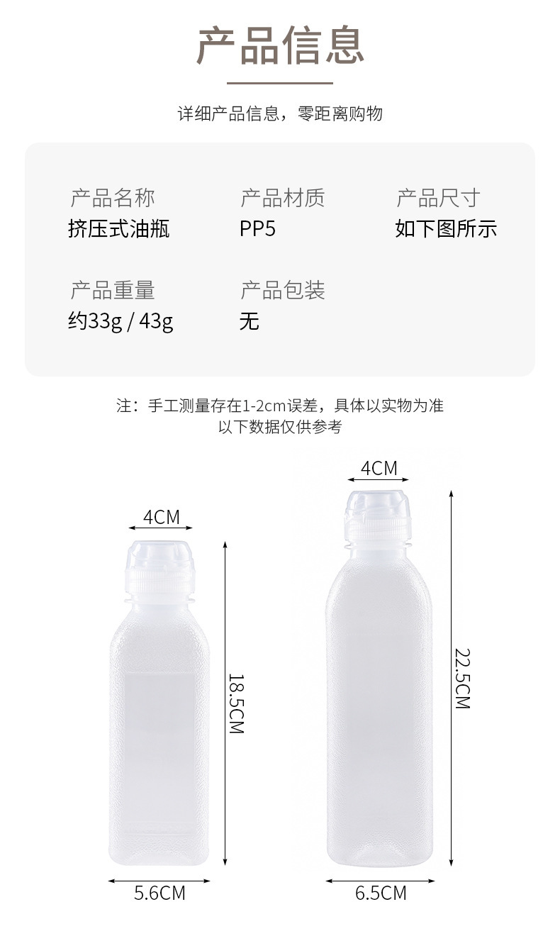 Cocina del hogar condimento de plástico olla de aceite olla de plástico salsa vinagre botella de salsa botella de aceite transparente