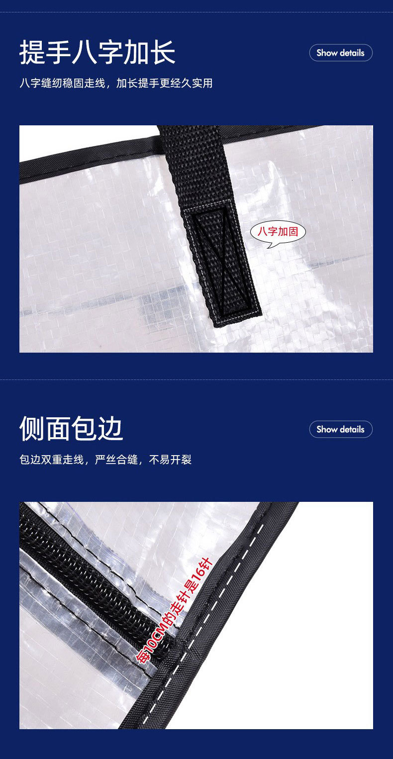 Bolsa tejida bolsa de embalaje móvil translúcido portátil PP bolsa de almacenamiento de gran capacidad hogar ropa impermeable ropa bolsa de cremallera