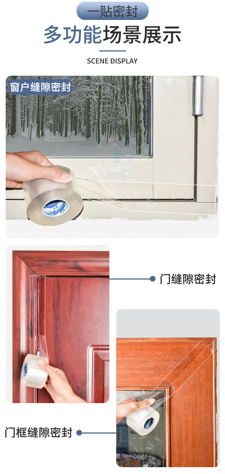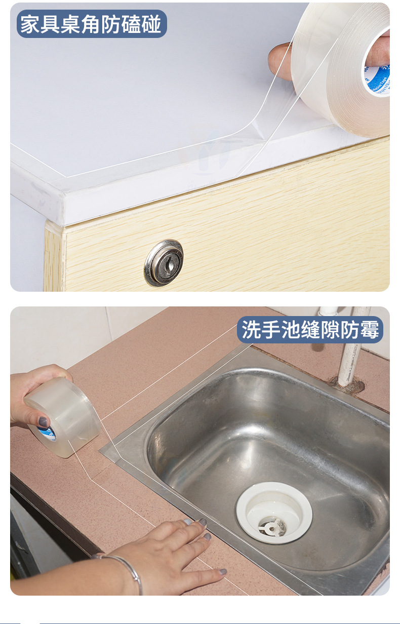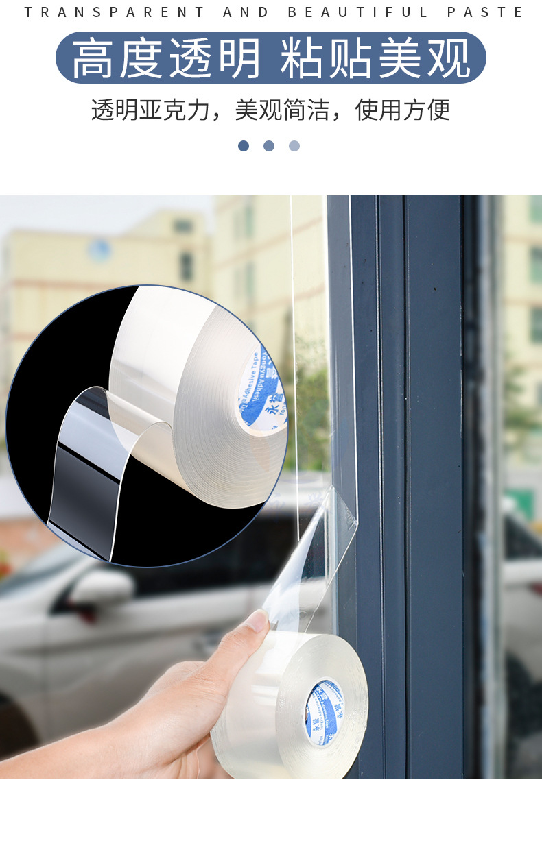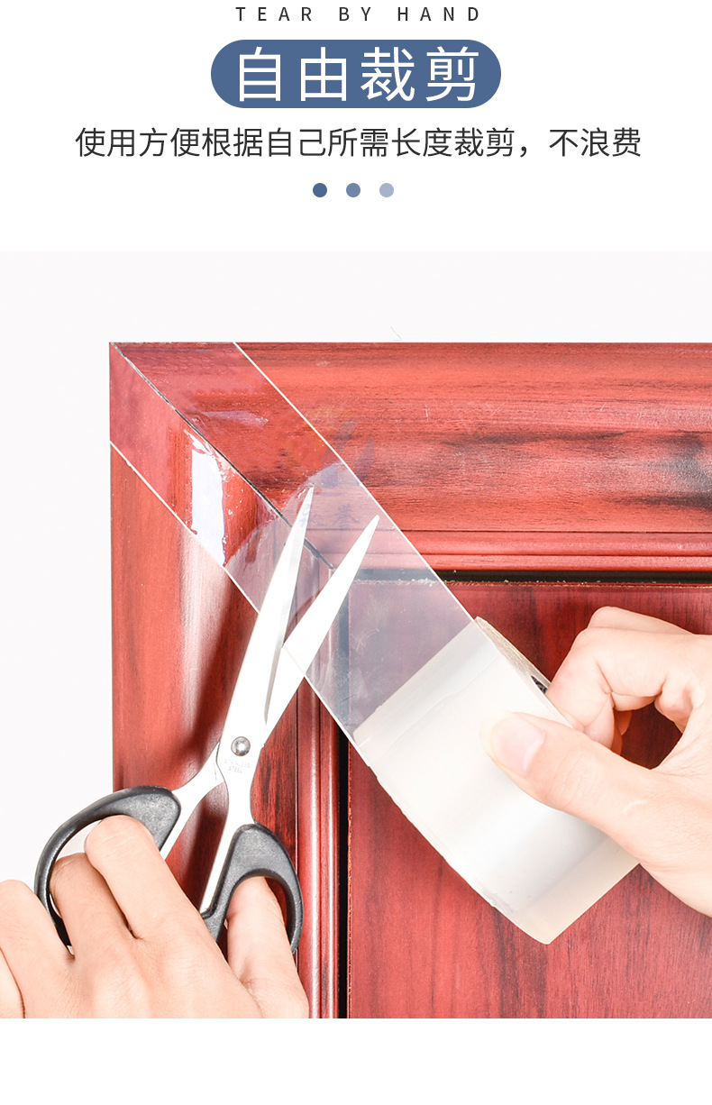 Cinta de sellado para puertas y ventanas sin pegamento, nano cinta acrílica transparente de una cara, cinta a prueba de viento para parabrisas de ventana