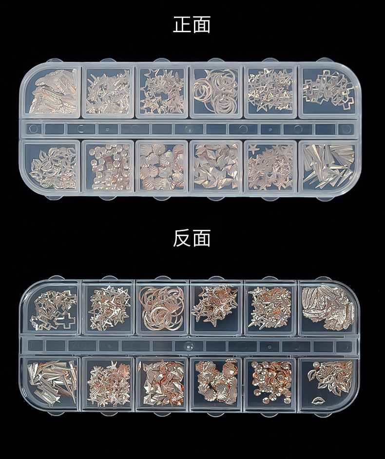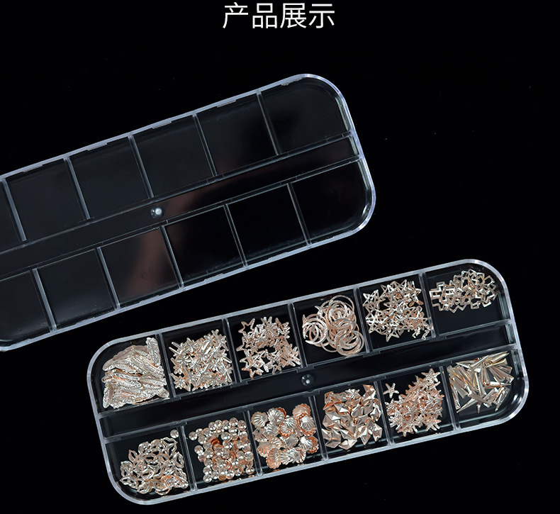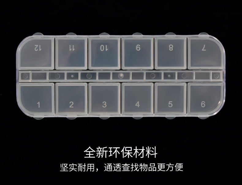 12-grid caja larga caja de embalaje transparente caja de diamantes de uñas caja vacía caja de almacenamiento de lentejuelas de joyería de uñas al por mayor