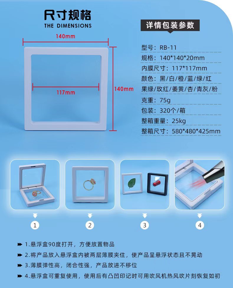14*14 reloj pluma creativa a prueba de polvo PE suspensión caja de embalaje regalo de joyería transparente película de almacenamiento caja de presentación