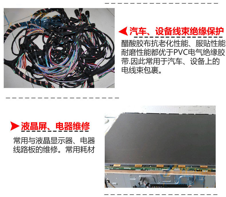 Cable de cinta de tela de acetato negro, arnés de aislamiento ignífugo de alta viscosidad, cinta de ácido acético, cinta de desecho que no deja marcas fáciles de rasgar