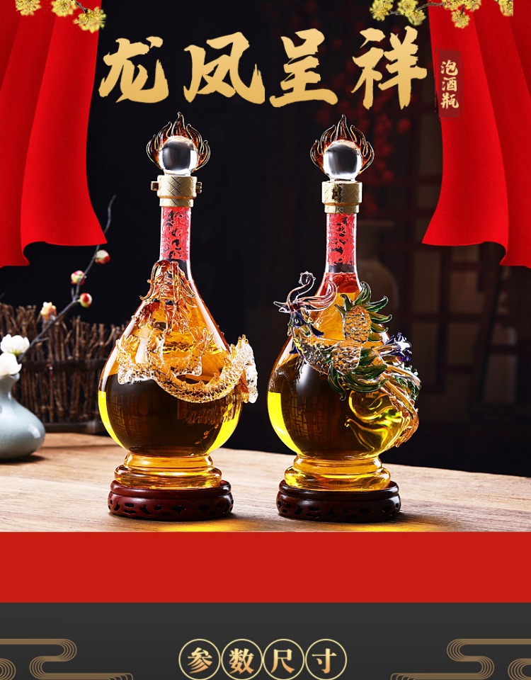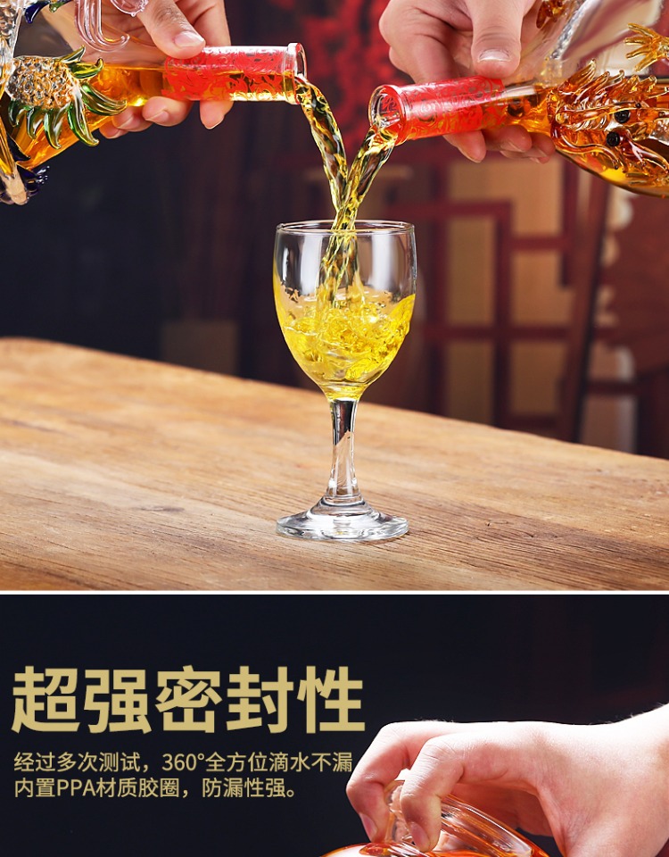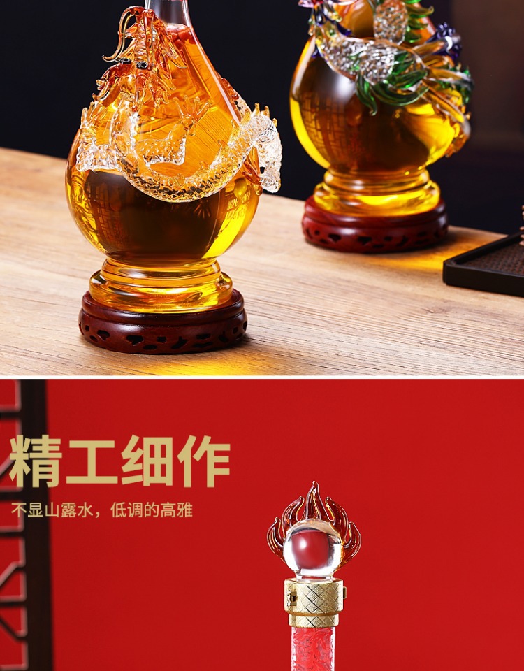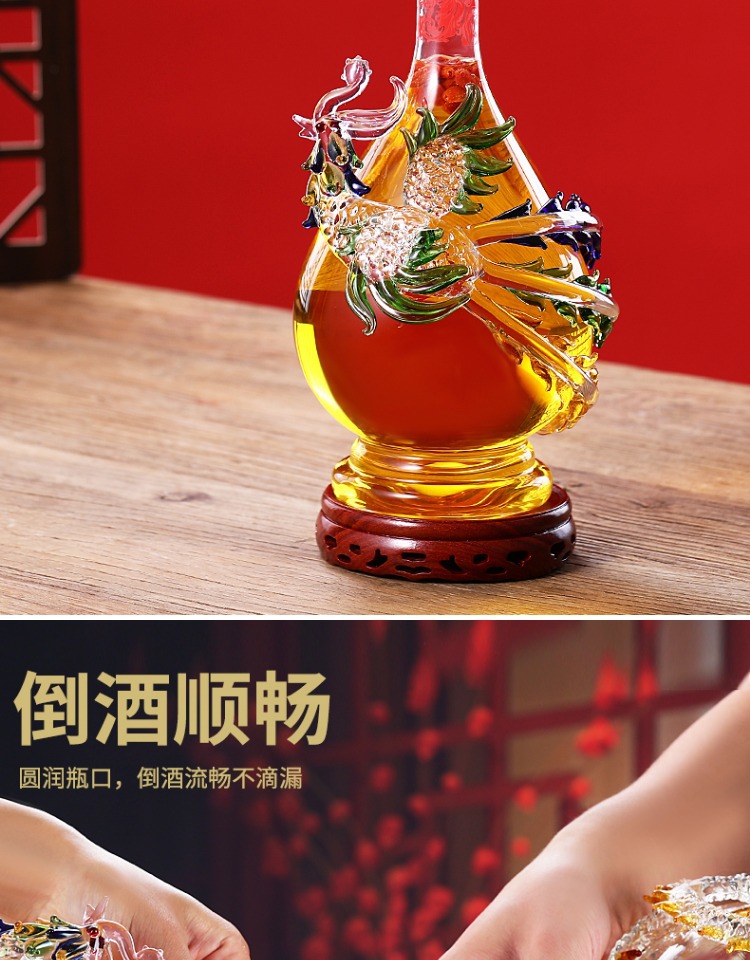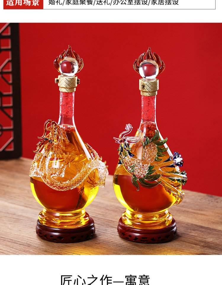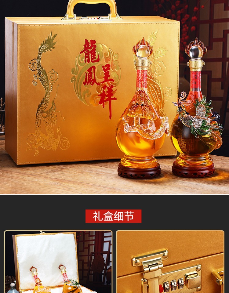 Suministros para banquetes de bodas Dragon and Phoenix Chengxiang Botella de vino de burbujas Botella vacía Botella de vino artesanal de vidrio resistente al calor con alto contenido de borosilicato grueso Caja de regalo