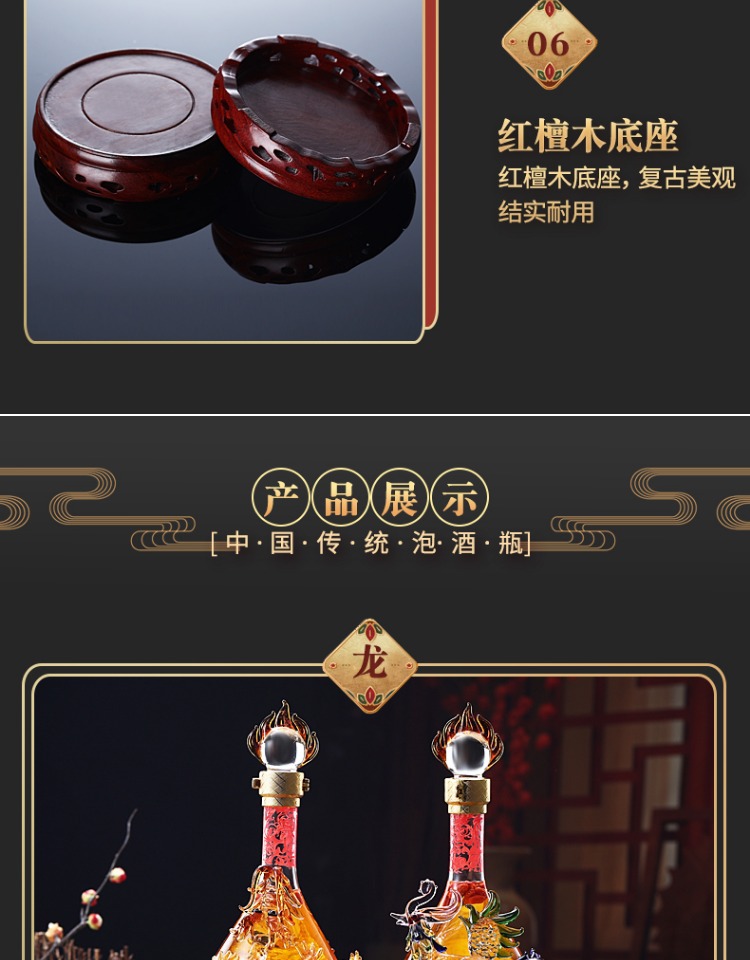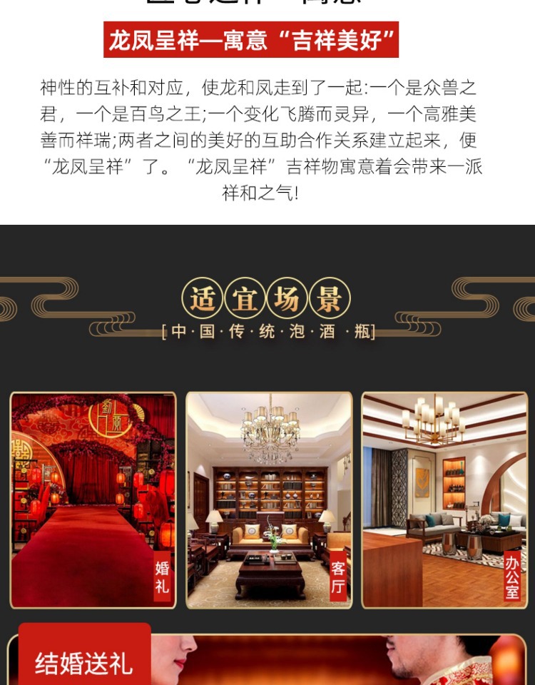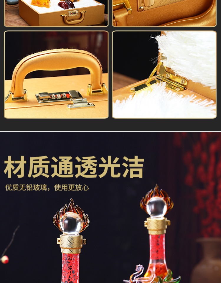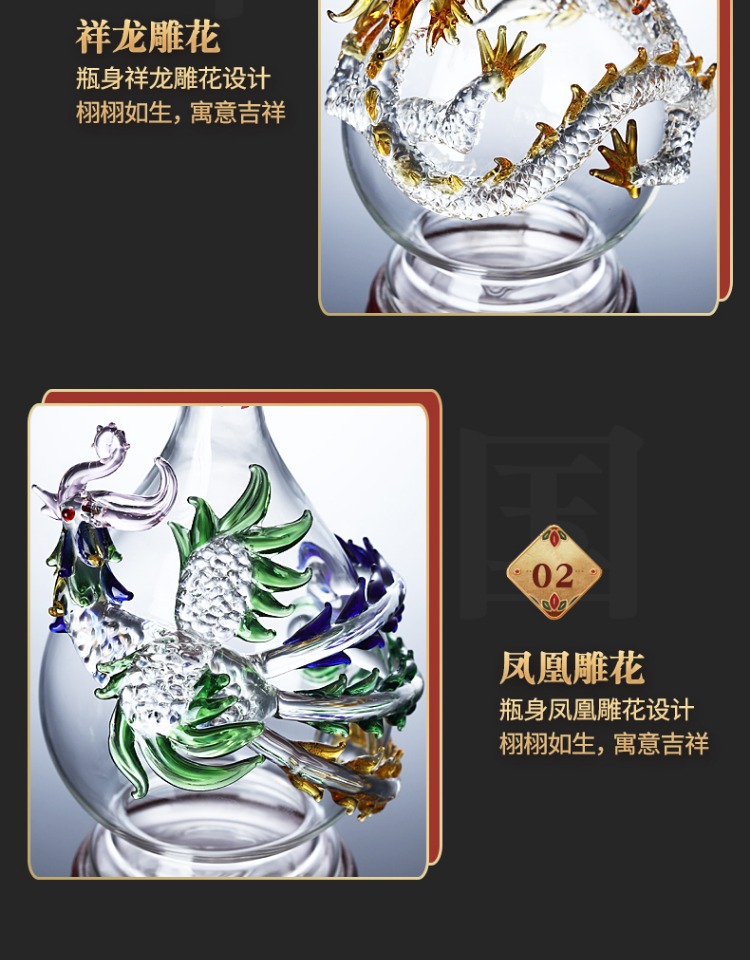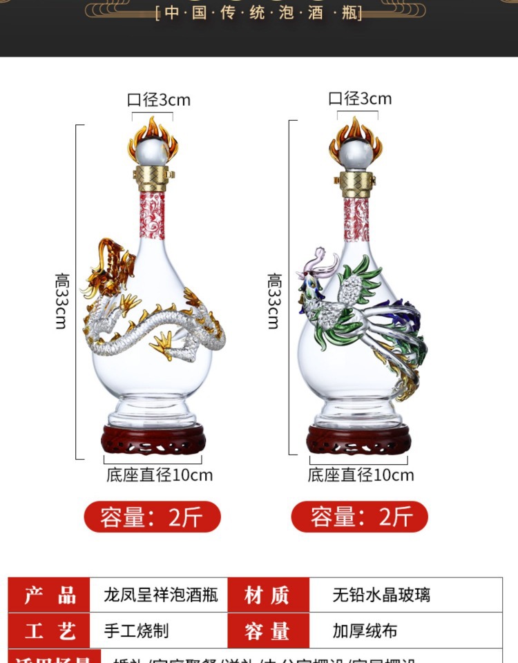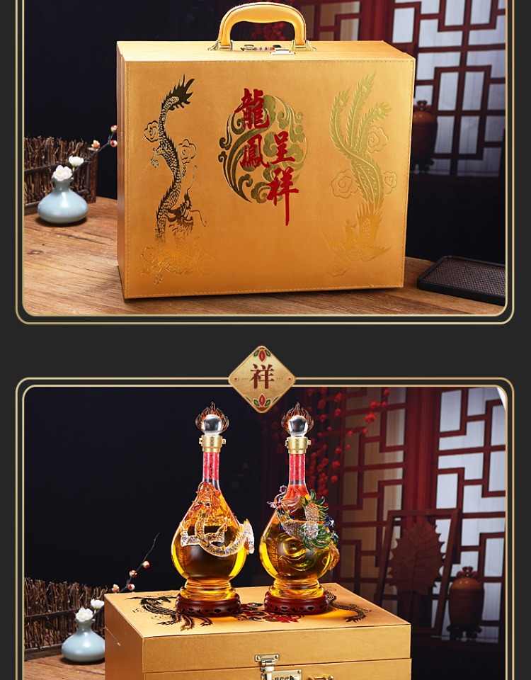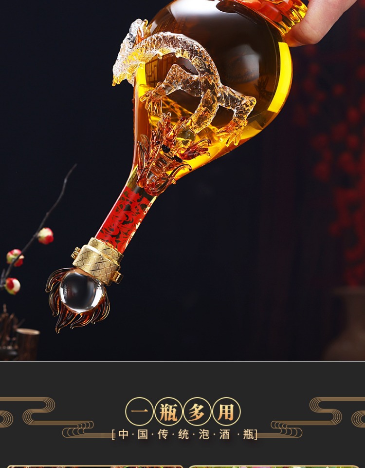 Suministros para banquetes de bodas Dragon and Phoenix Chengxiang Botella de vino de burbujas Botella vacía Botella de vino artesanal de vidrio resistente al calor con alto contenido de borosilicato grueso Caja de regalo