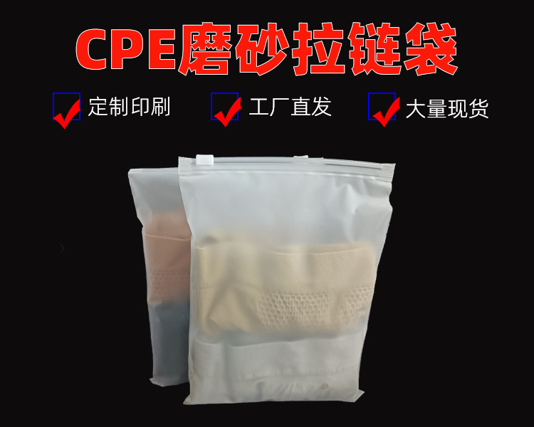 CPE transparente esmerilado bolsa de cremallera ropa interior bolsa de ropa al por mayor pe de plástico Ziplock bolsa calcetines bolsa de ropa interior en stock