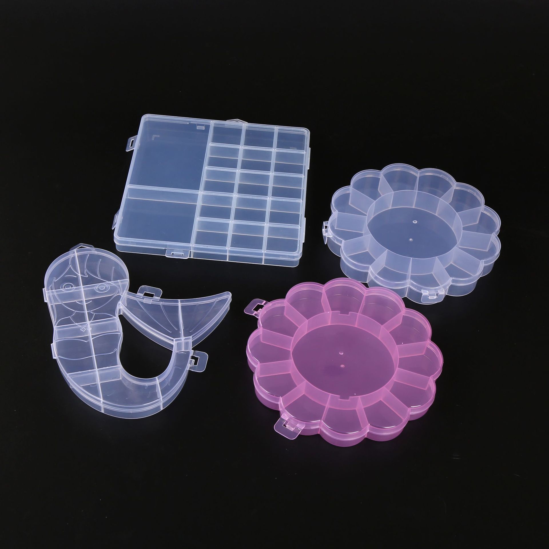 Pp material Plum Blossom caja de plástico pequeña banda de goma pulsera DIY compartimiento de joyería tocado caja de almacenamiento caja de plástico Mermaid