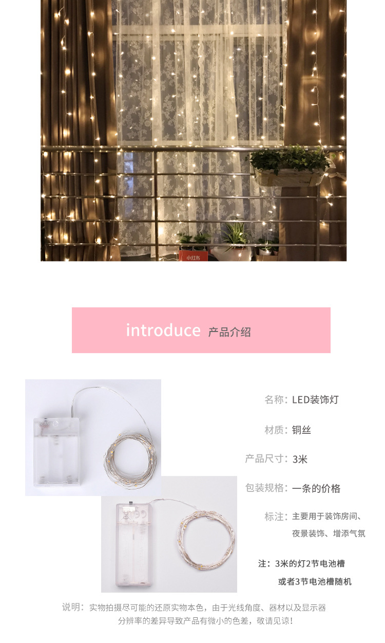 Empaquetado de La Flor estrellado luz LED decoración de vacaciones atmósfera luz al por mayor mano DIY regalo joyería alambre de cobre Cadena de luz