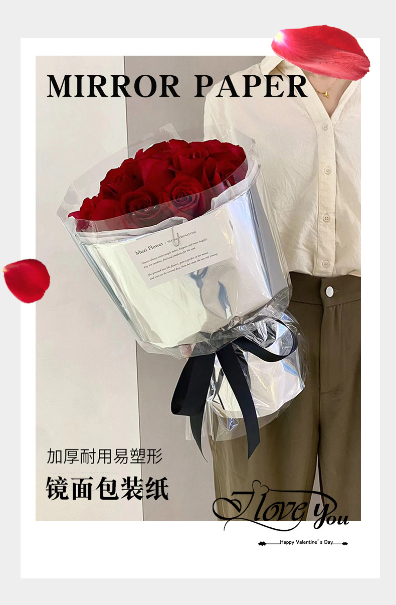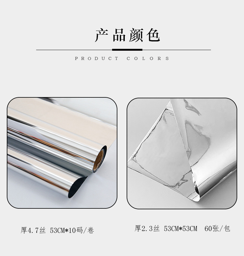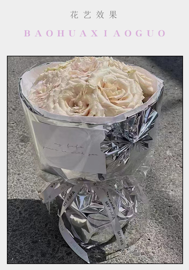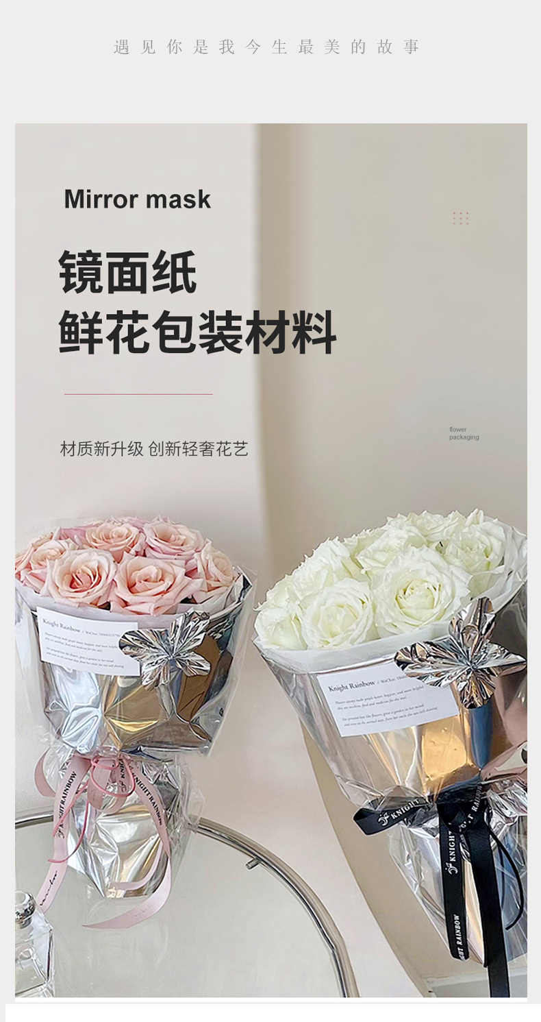 Espejo brillante papel de envolver papel de arte papel de metal impermeable ramo de flores de plata papel reflectante papel de aluminio