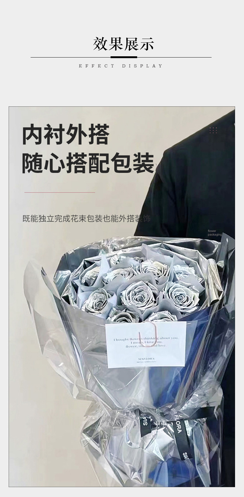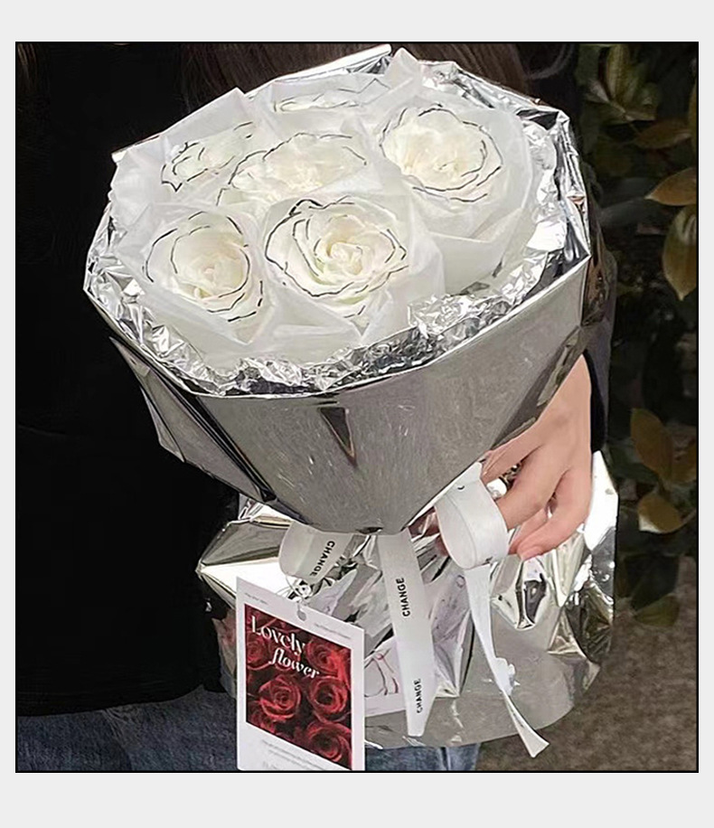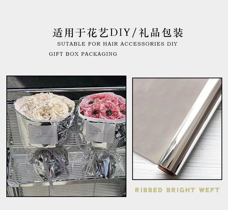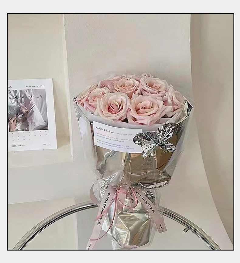 Espejo brillante papel de envolver papel de arte papel de metal impermeable ramo de flores de plata papel reflectante papel de aluminio