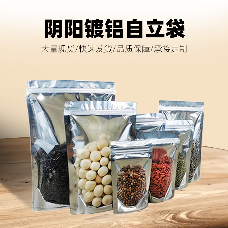 | Bolsa ziplock | Bolsa ziplock chapada en aluminio, bolsa vertical con ventana abierta, bolsa ziplock yin y yang, bolsa sellada con alimentos |