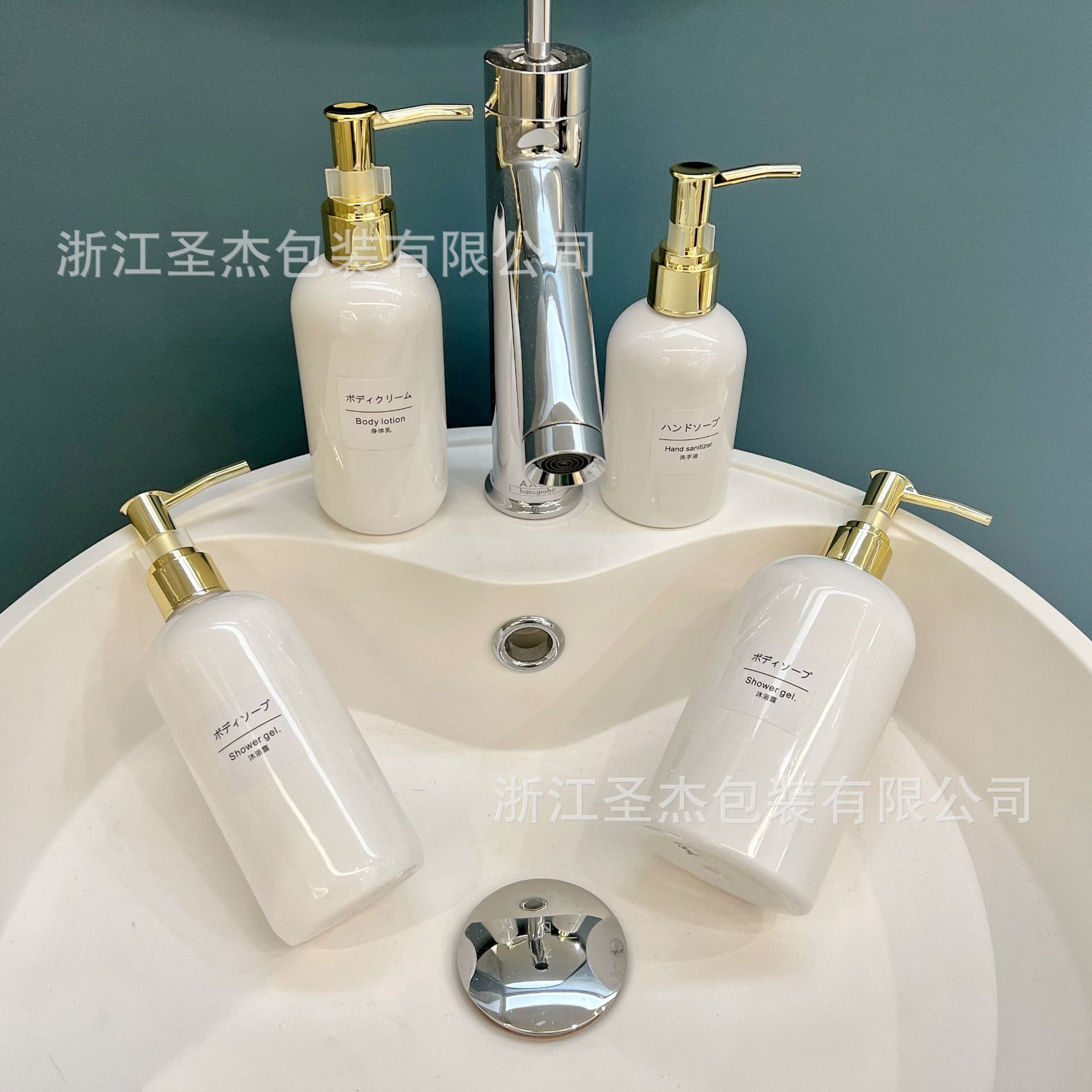 DP350ml ABS chapado en oro; blanco (botella desnuda predeterminada sin pegatina)