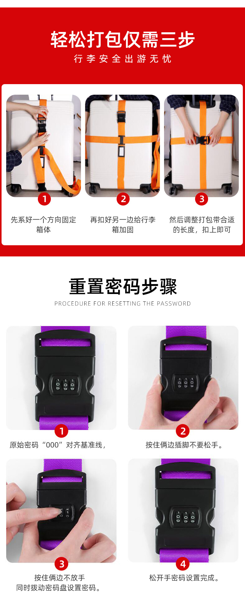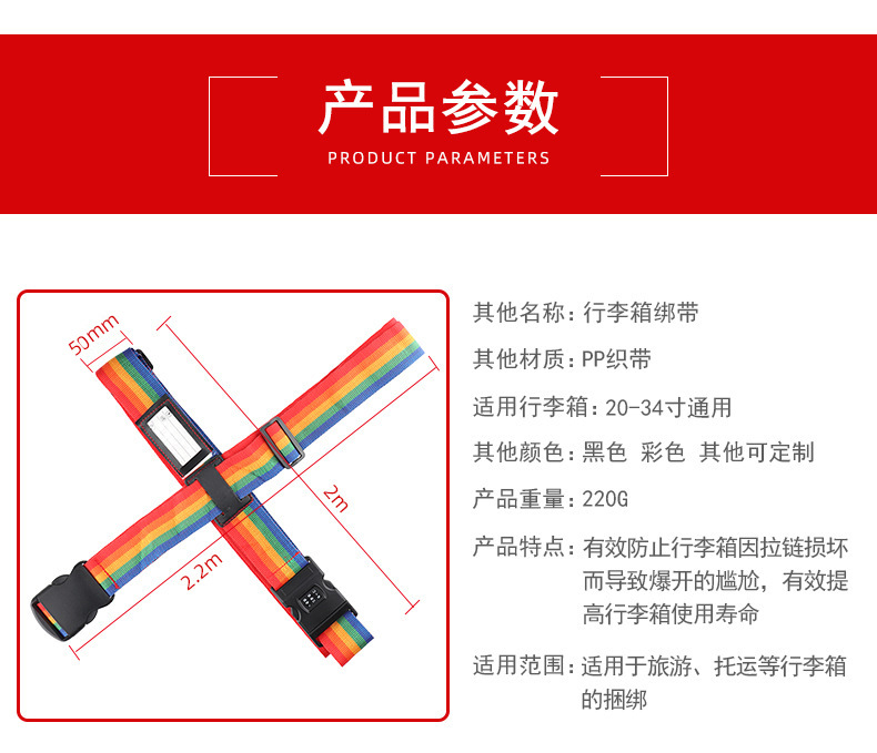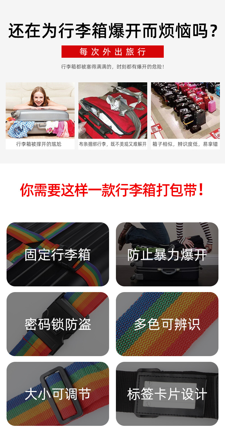 Hebilla de equipaje cruzado embalaje cinturón de fijación envío cinturón de unión a prueba de explosiones Contraseña de bloqueo correa de equipaje PP cinturón de embalaje