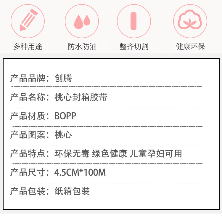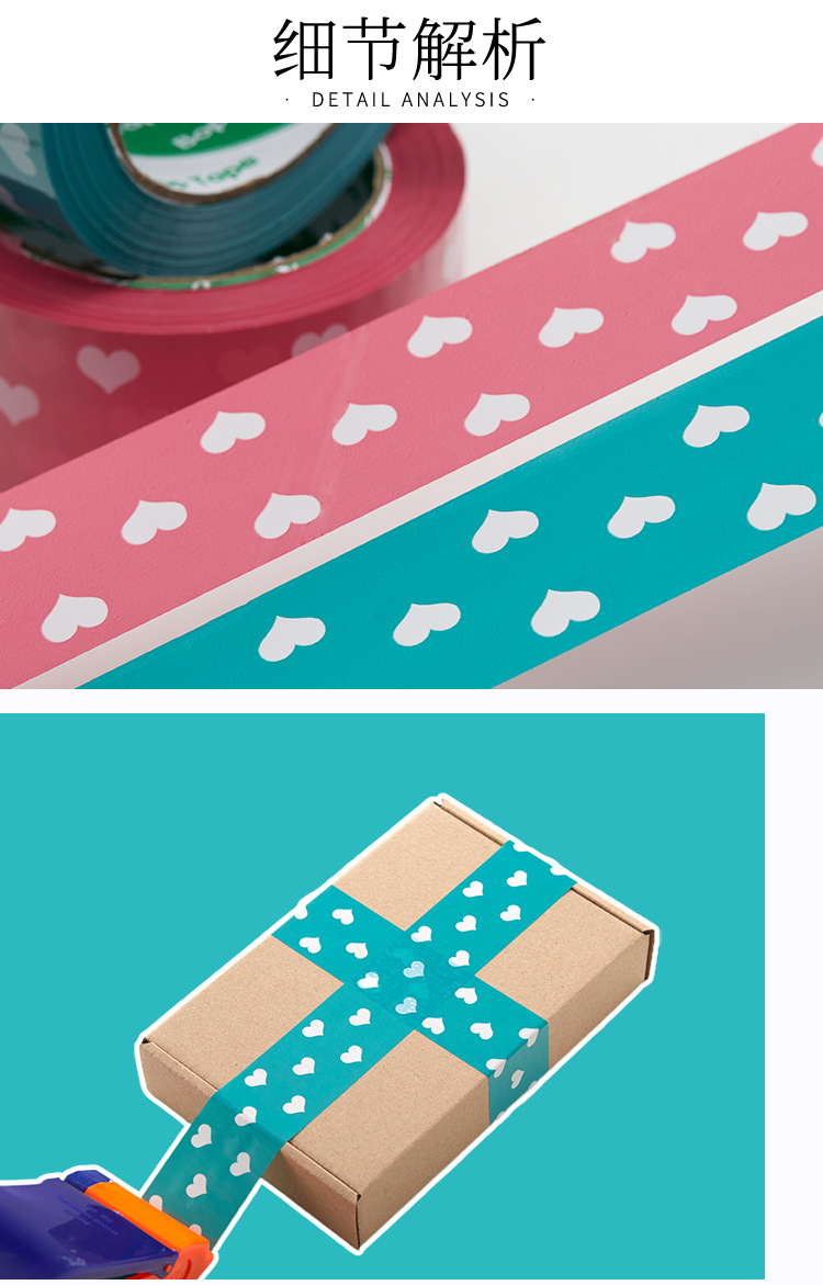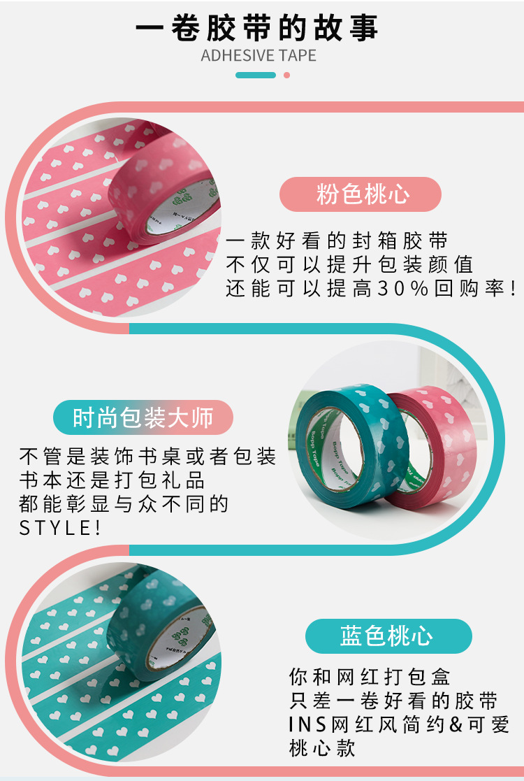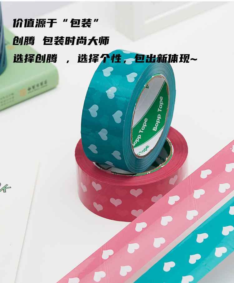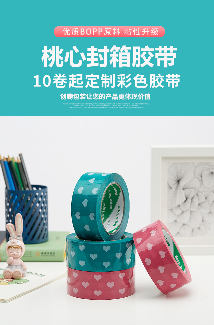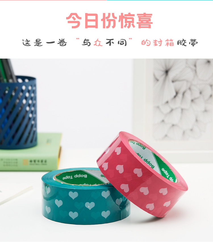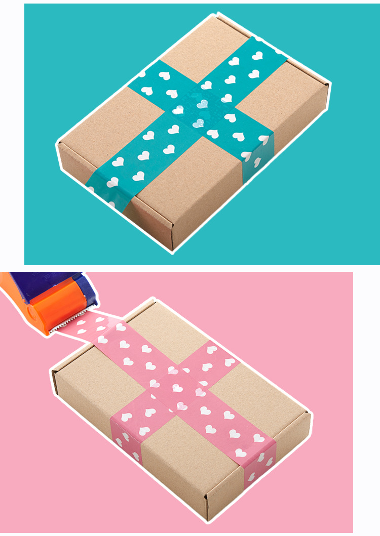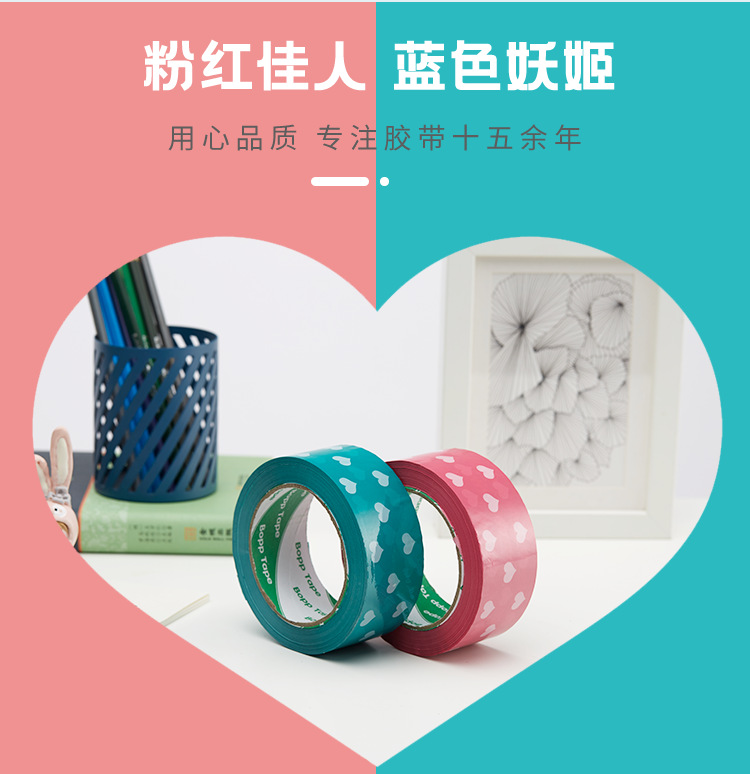 Cinta de sellado azul melocotón corazón sellado papel adhesivo cinta ancha rosa en forma de corazón lindo patrón expreso cinta de embalaje