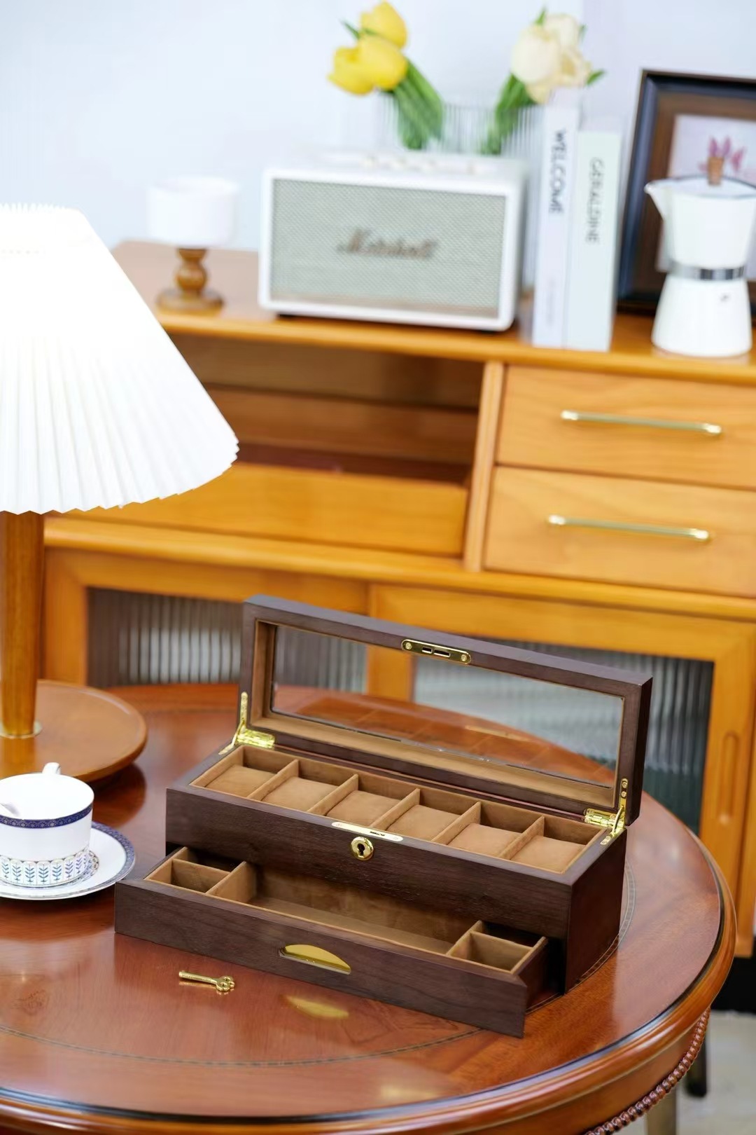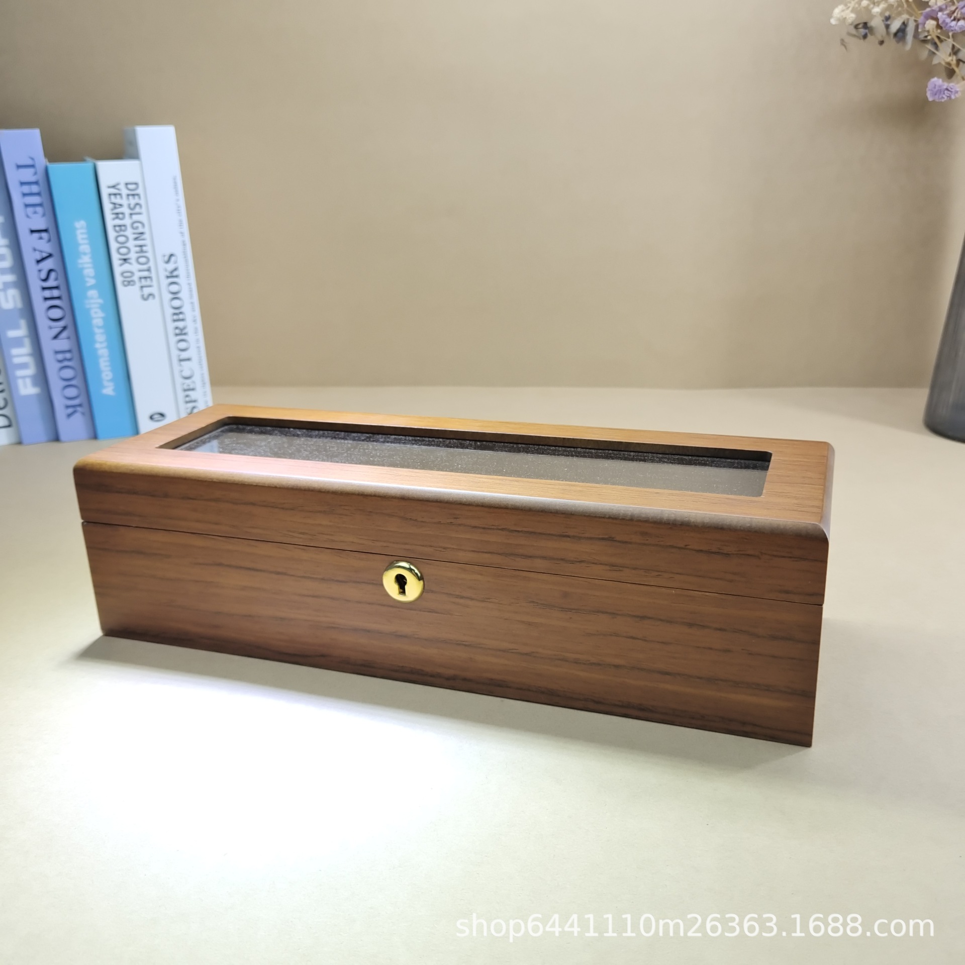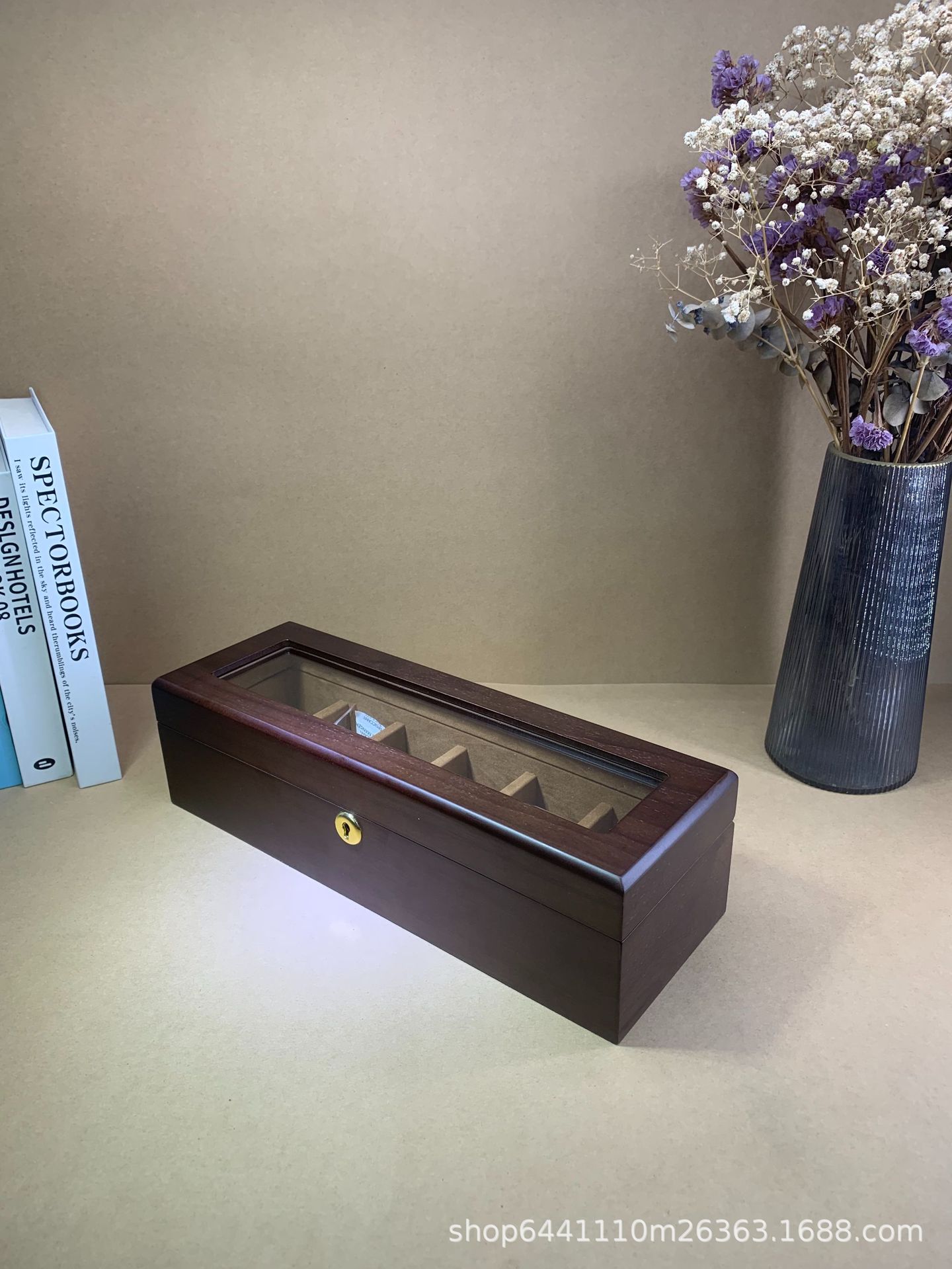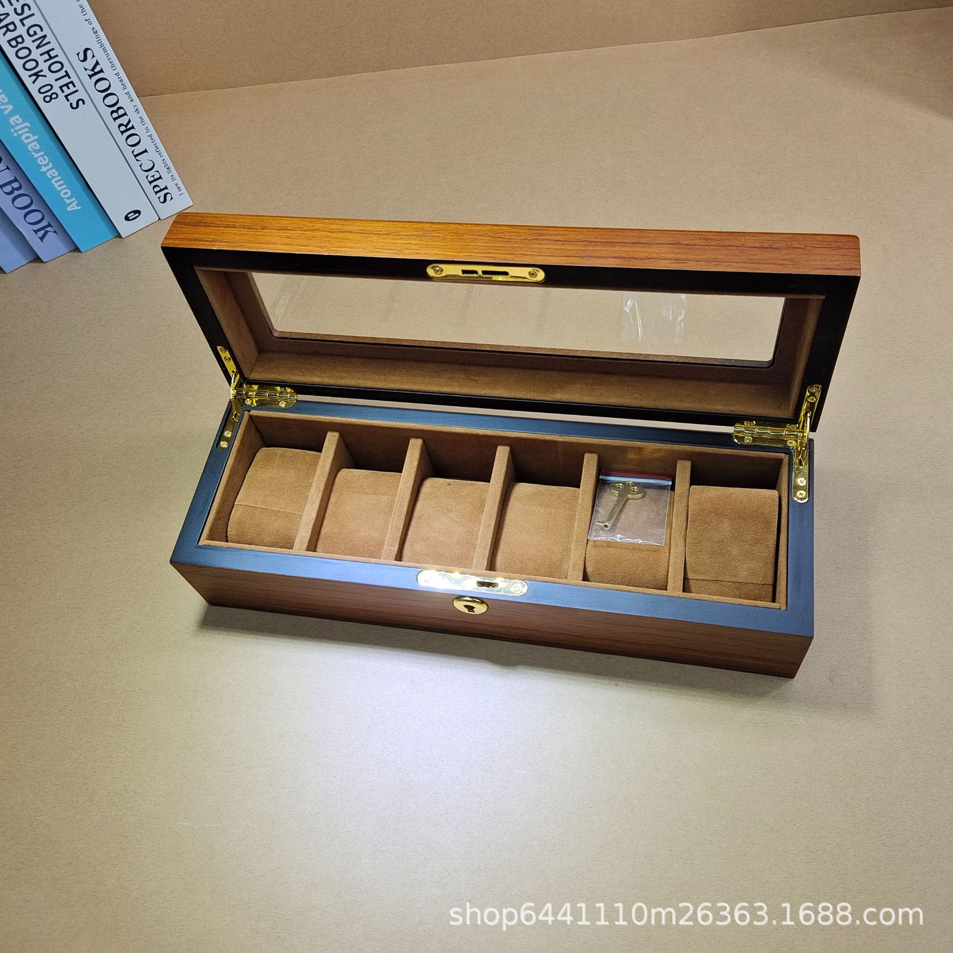 Fábrica en stock Caja de reloj de alto brillo de madera maciza de 6 bits Caja de almacenamiento de reloj de madera de pintura a prueba de polvo de ventana de gama alta de estilo europeo